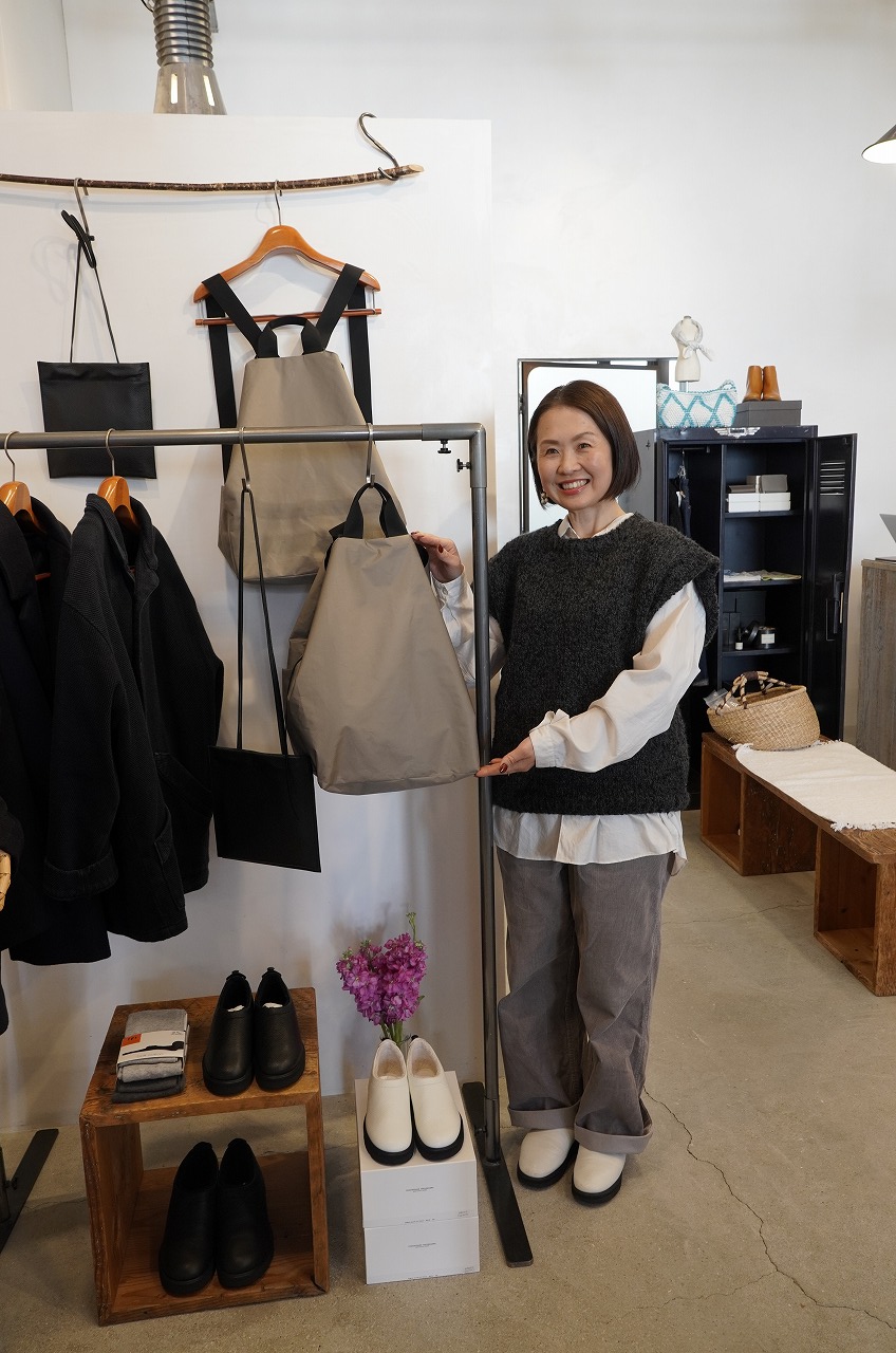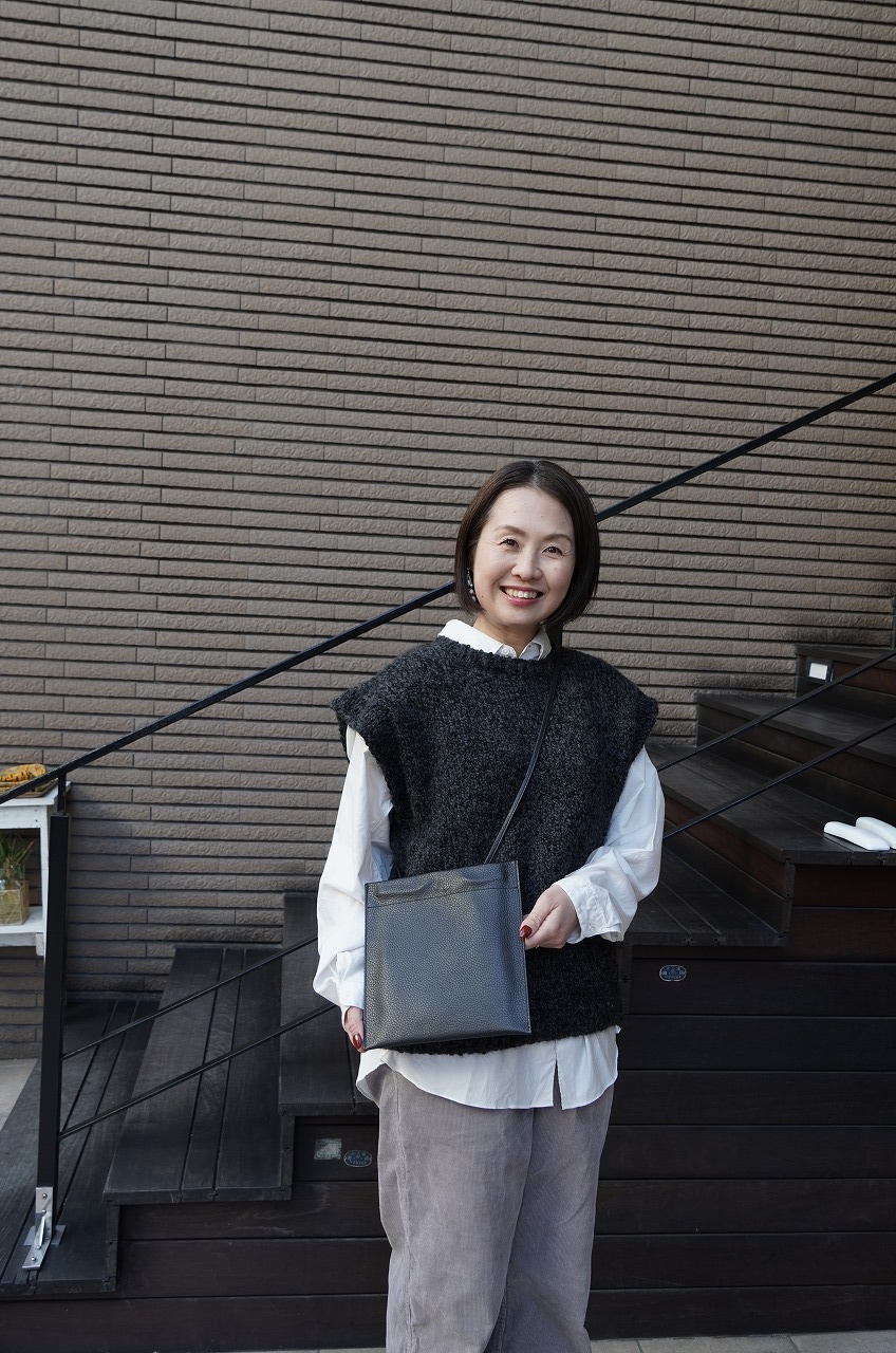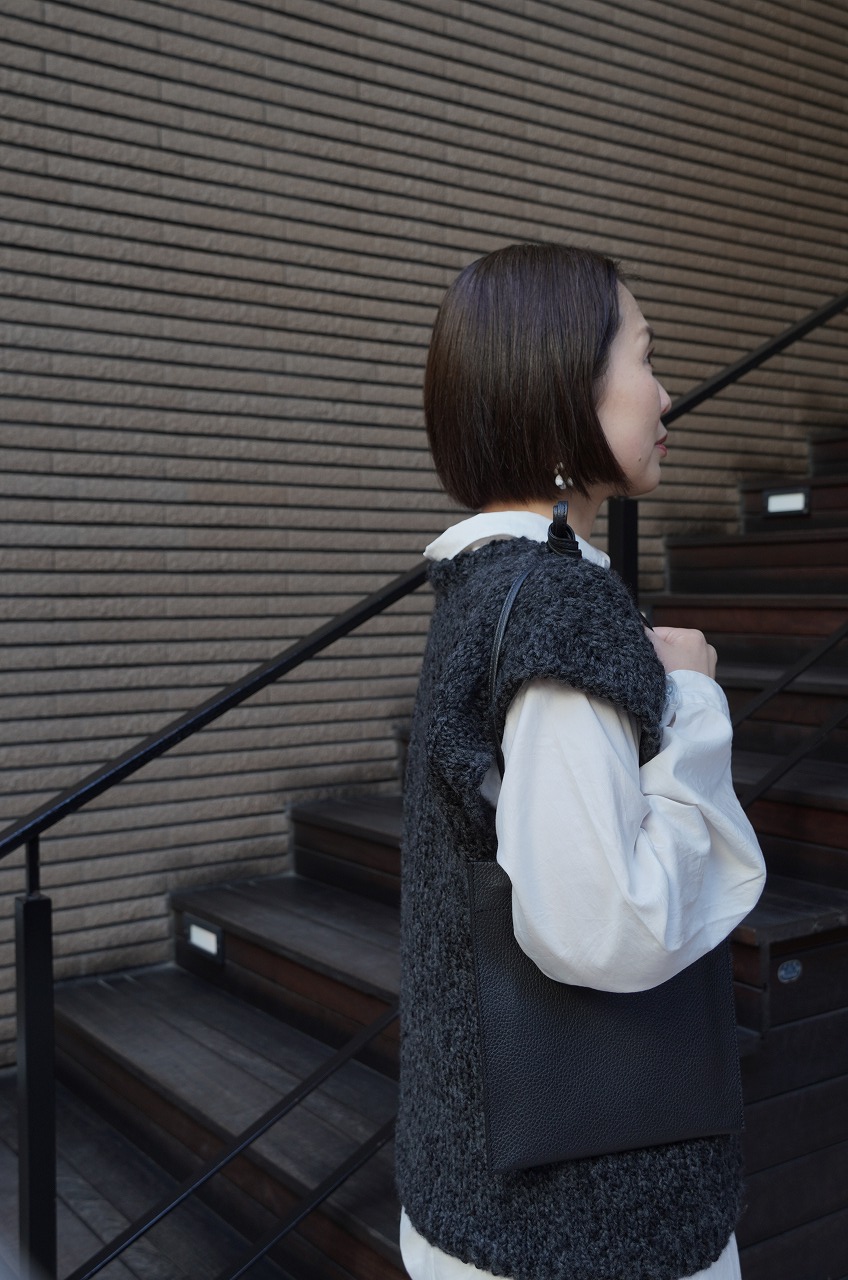 適度なボリューム感と丸みのあるフォルムはさまざまなボトムとバランス良く合わせていただけます。