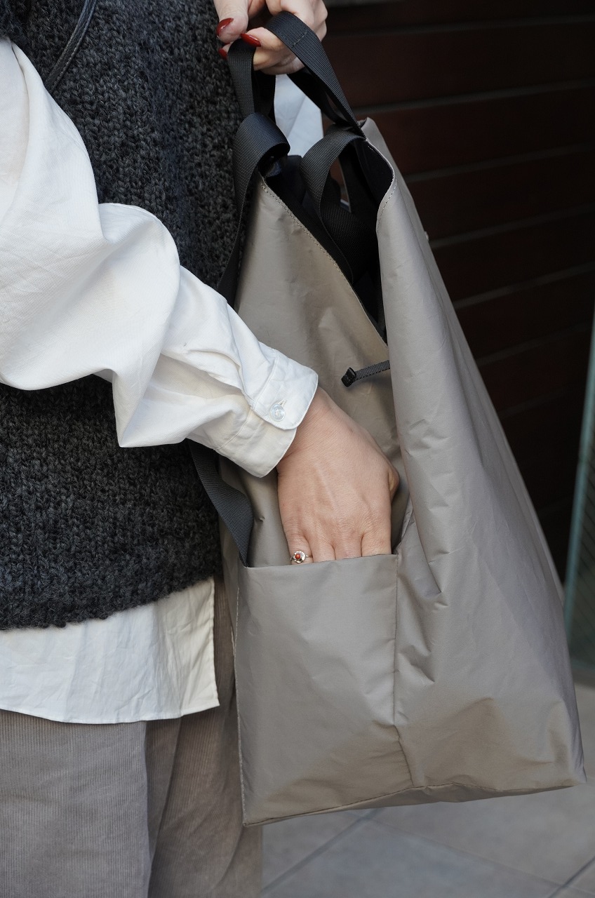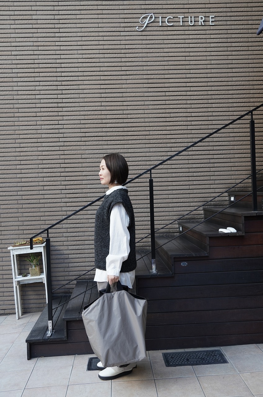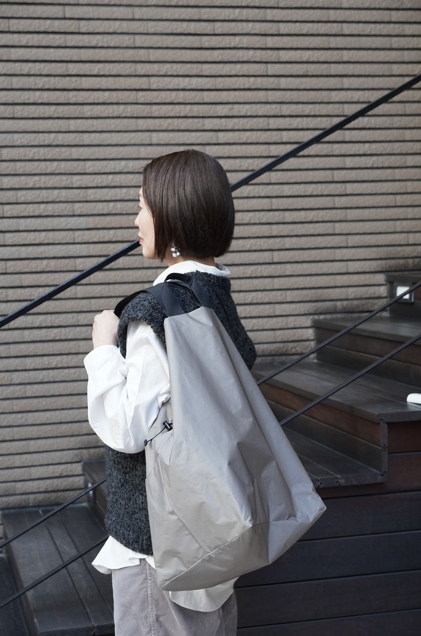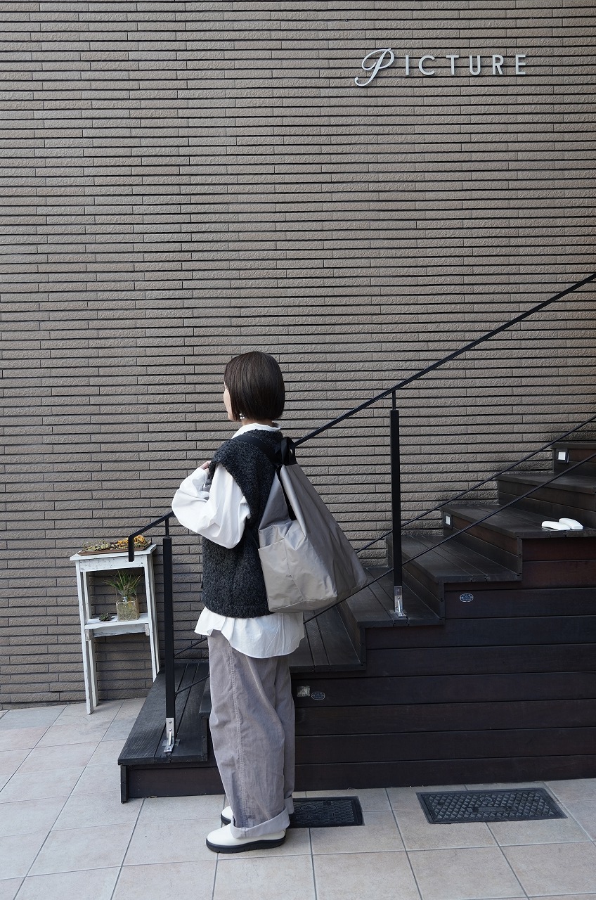 最後にノースフェイスパープルレーベルのバックを。気になってくださっているお客さまも多かったのでコーディネートで持ってみました。意外とショルダーを外した方がカジュアルすぎずさっと持てて良いかもしれませんね!