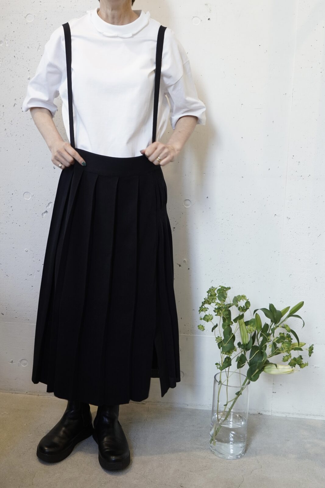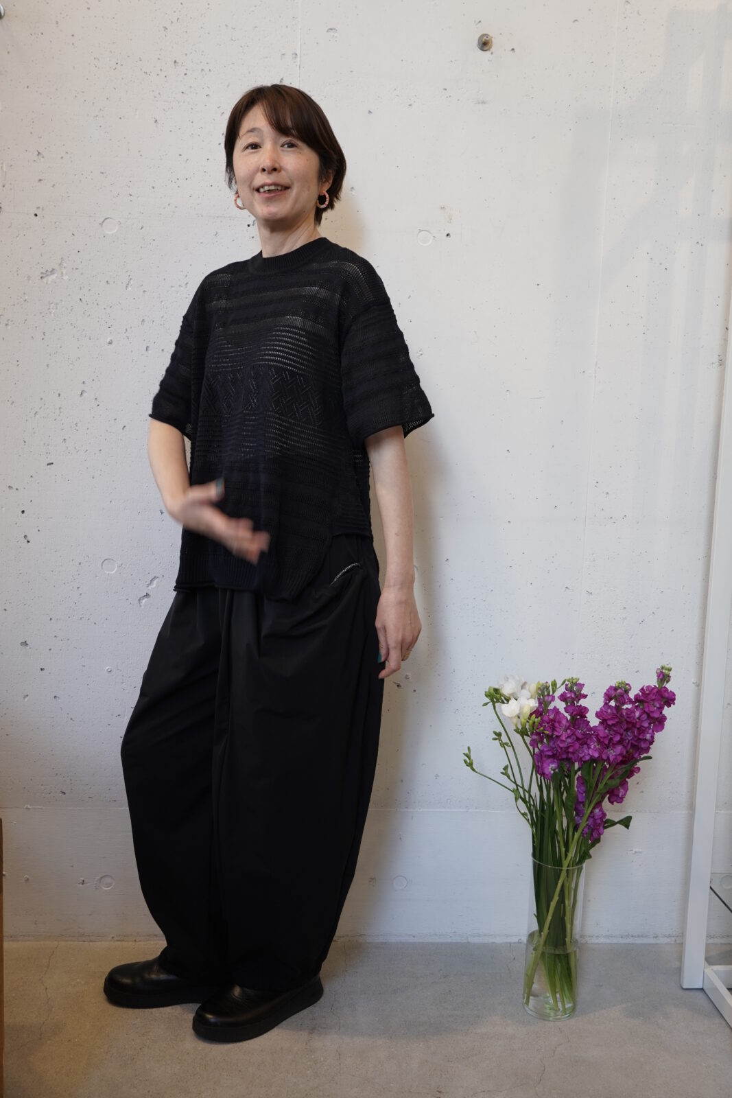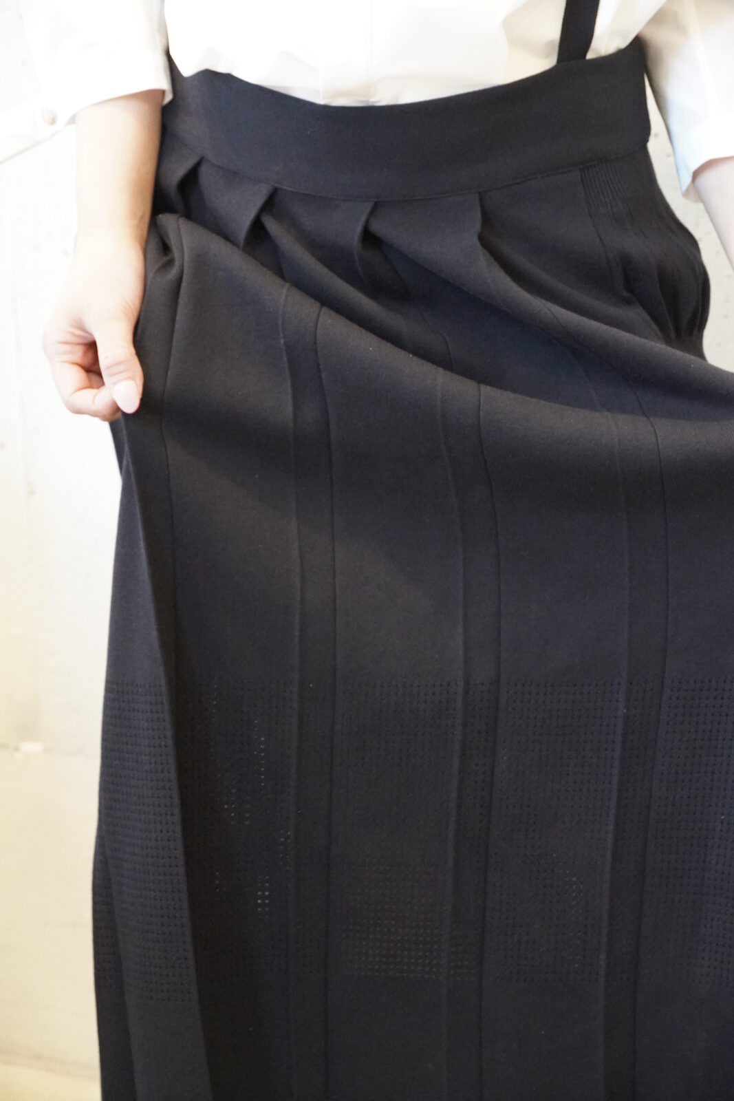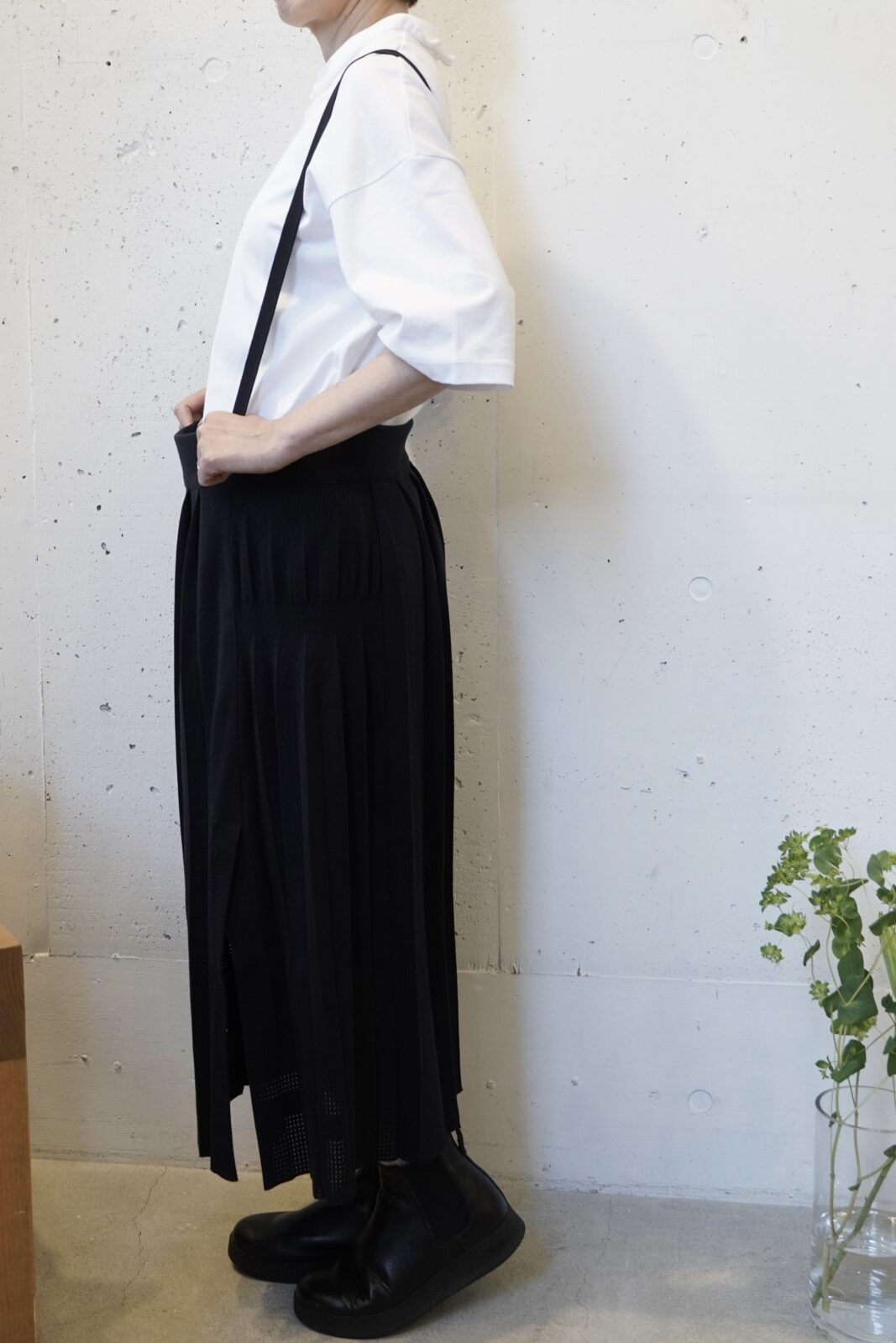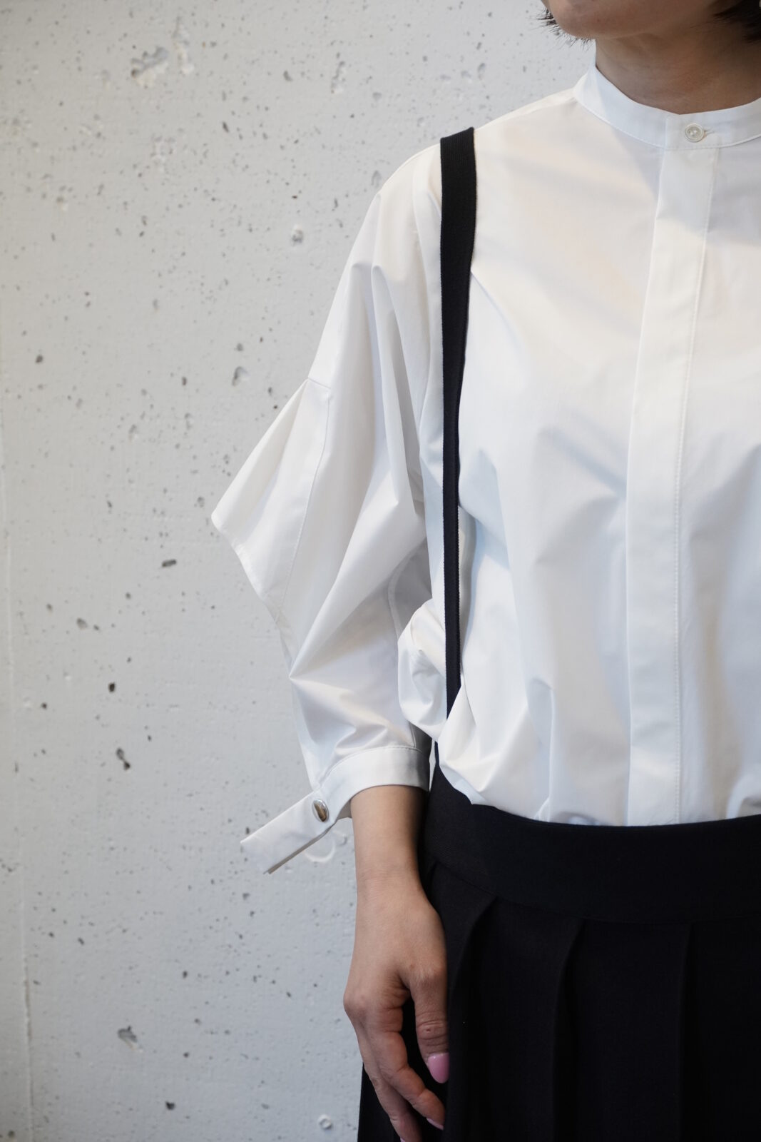こちらも高密度に織られた軽やかなワイドストレートパンツです。程よいシボ感とハリ感があり、シワが目立ちにくいのも嬉しいポイントです。夏でも快適に履いていただけます。