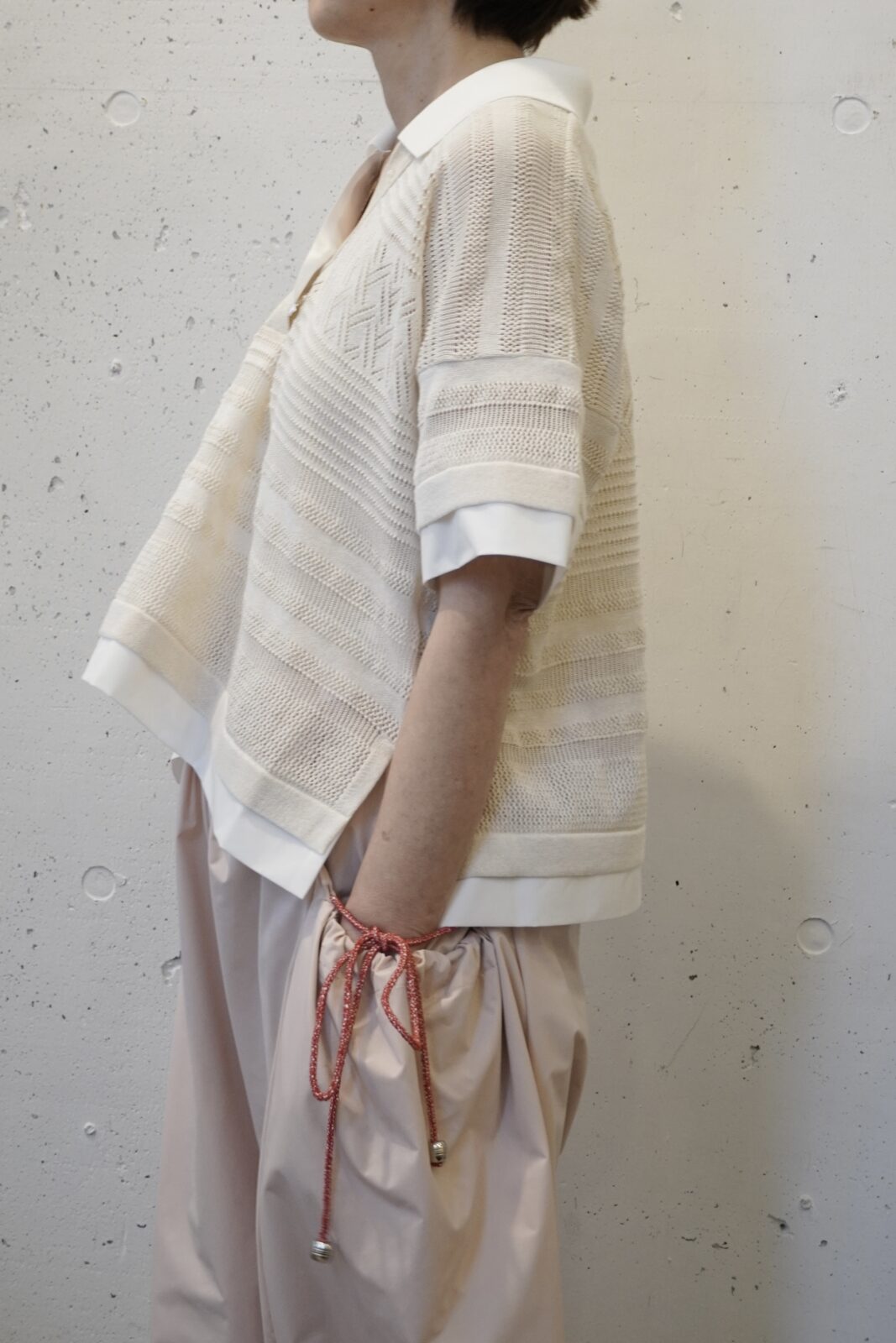 コンパクトな着丈なのでワイドパンツやデニム、ワンピースに重ねたりとコーディネートを楽しんでいただける1枚です。