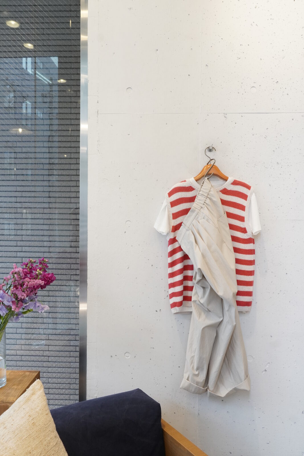 真夏はきっとノースリーブで着るのでしょうが、それ以外はTシャツやシャツを重ねることが多いと思います。それもまた皆さまへのおすすめポイントの一つです。