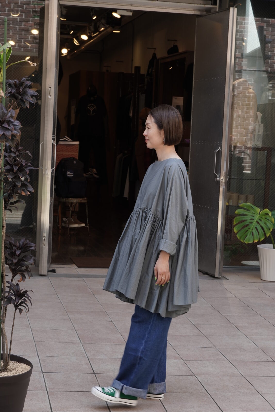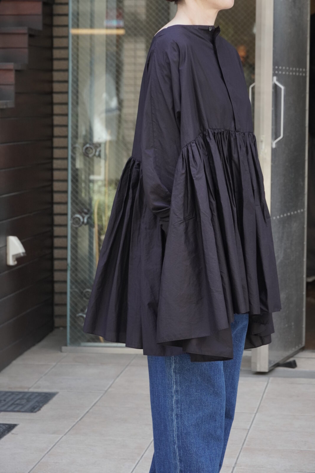 wide gather blouse vintage white / dim turquoise / purple black ¥53,900