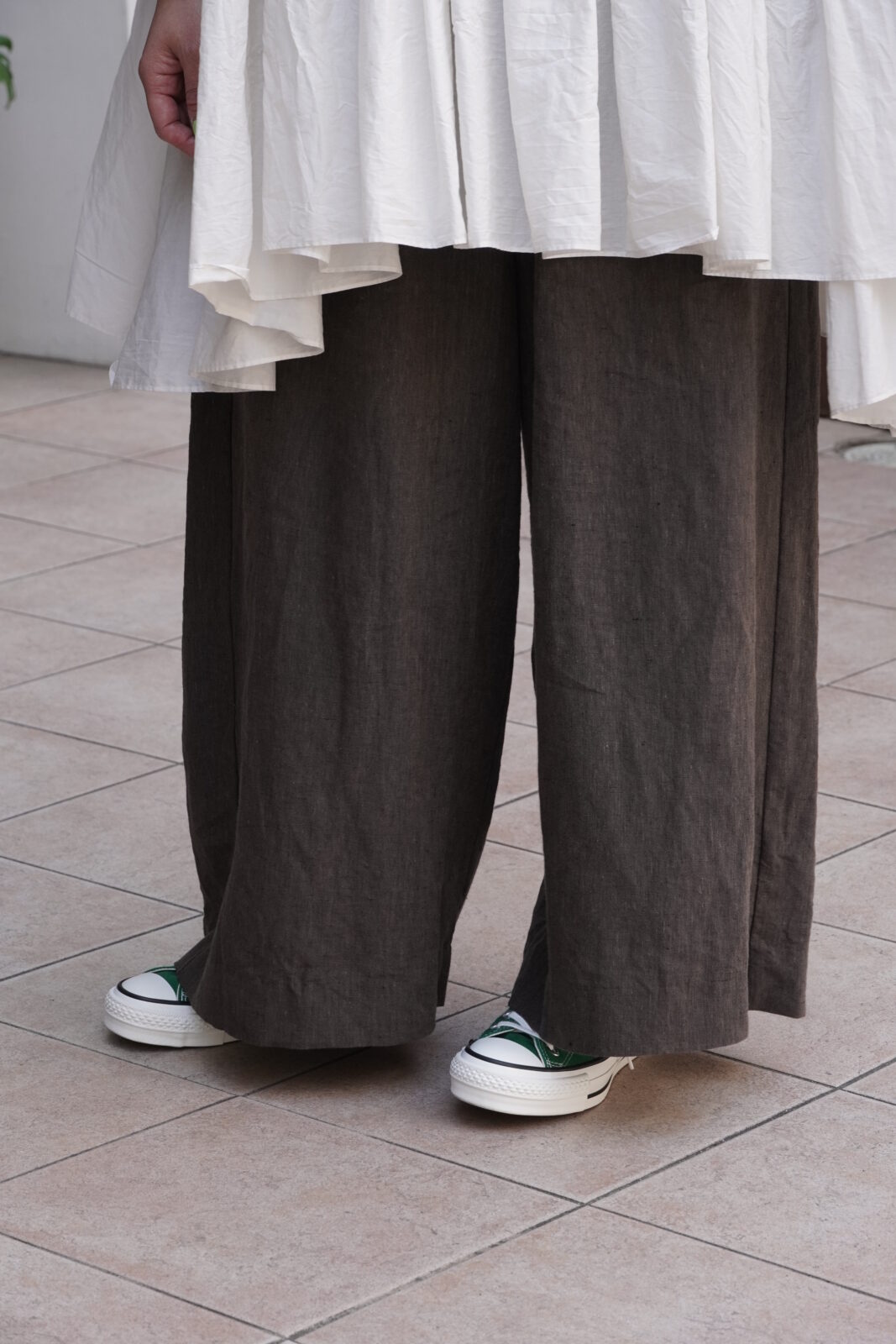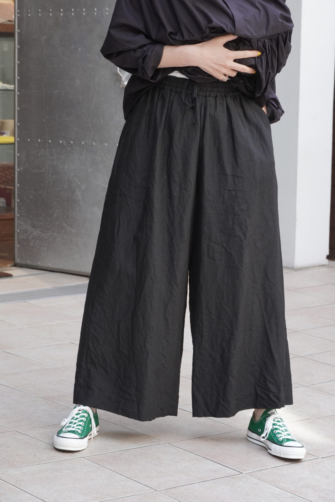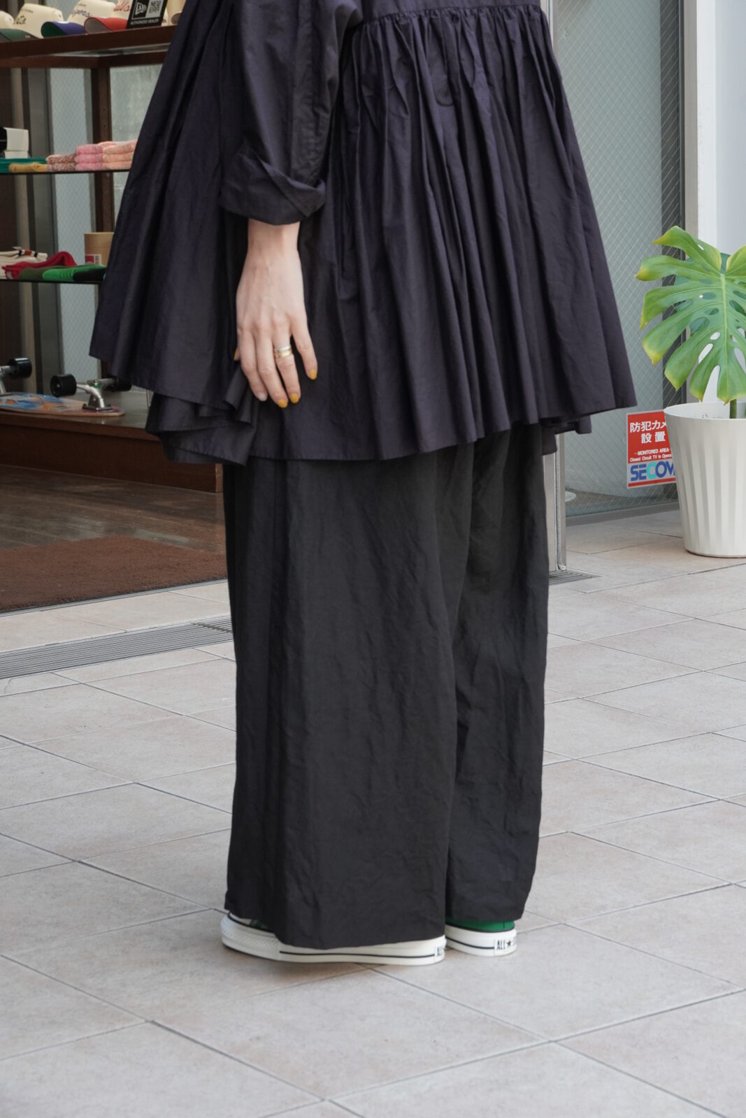 前シーズンのキュロットパンツより今回はすっきり目のワイドギャザーパンツ。
