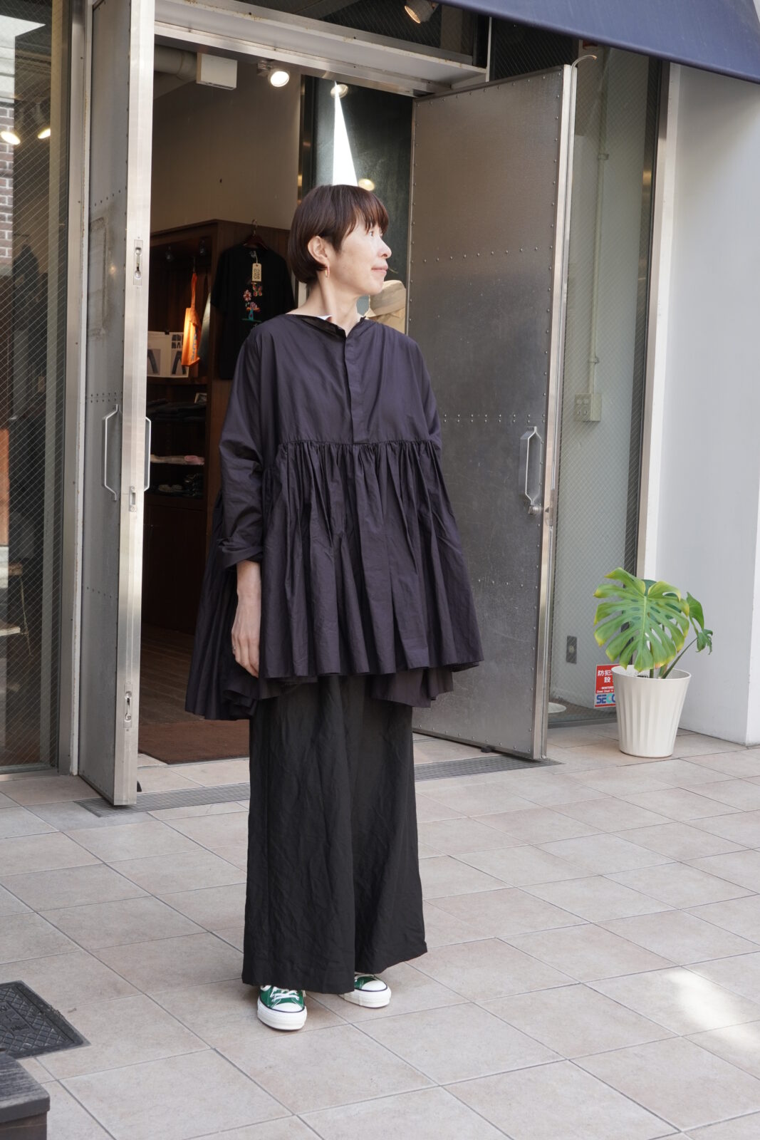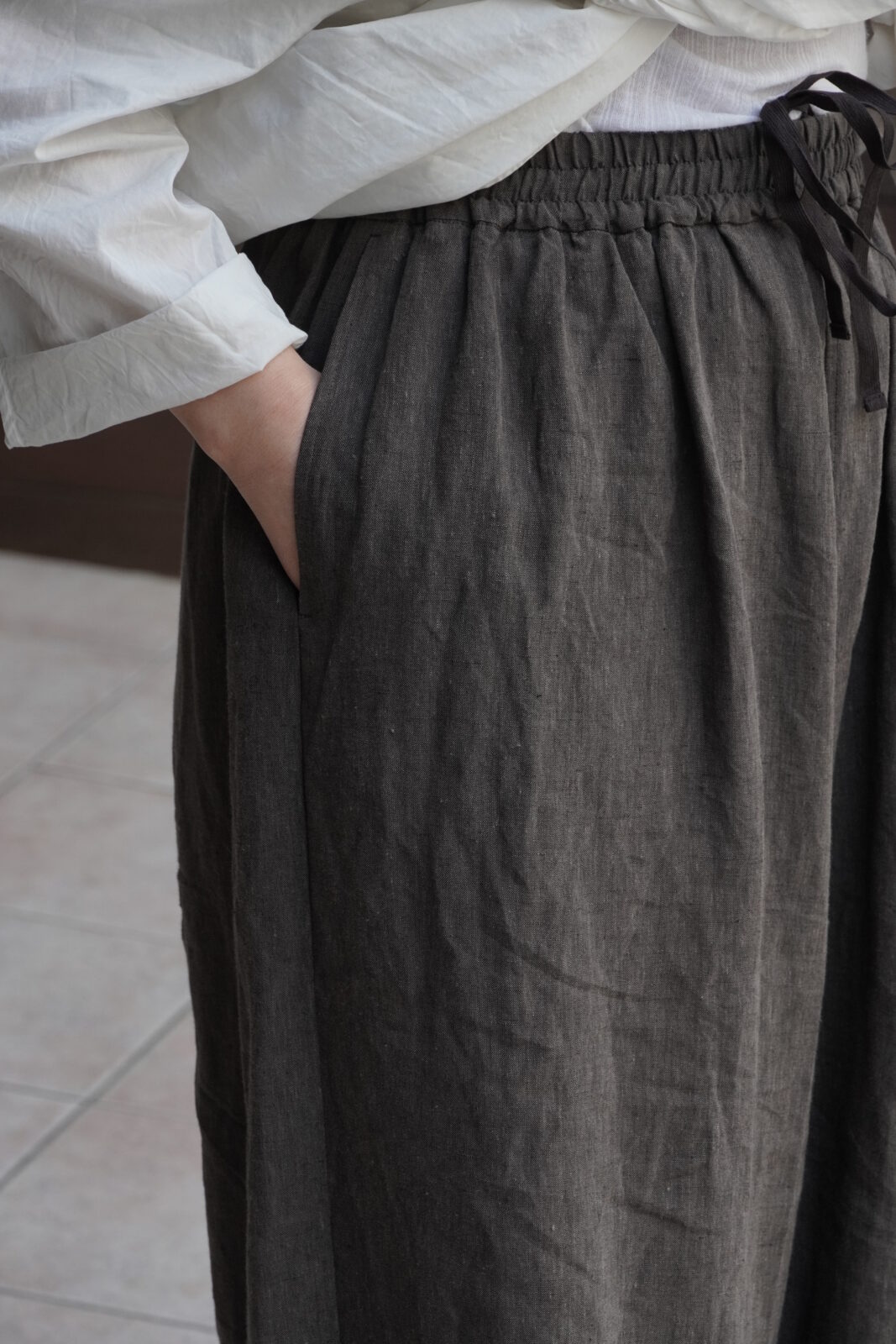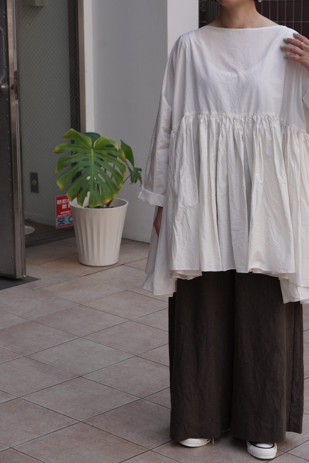前シーズンのキュロットパンツより今回はすっきり目のワイドギャザーパンツ。