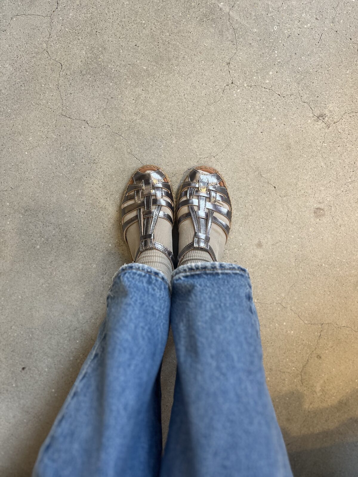 シルバーでもゴールドでもなくグレーのラメが飽きもこず、メンズライクな服が多い方にもぜひ履いていただけたら嬉しいなっと思います(^^)