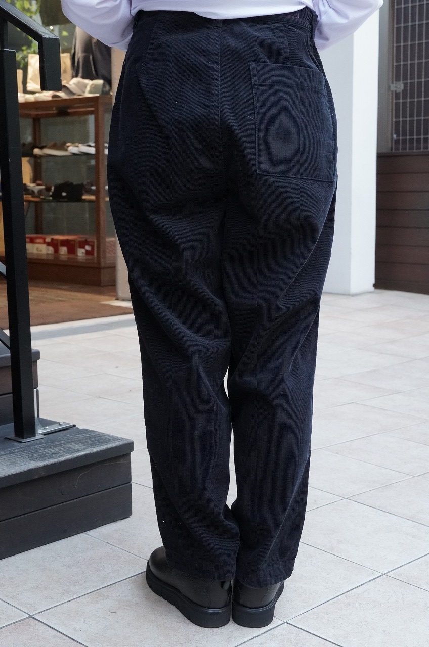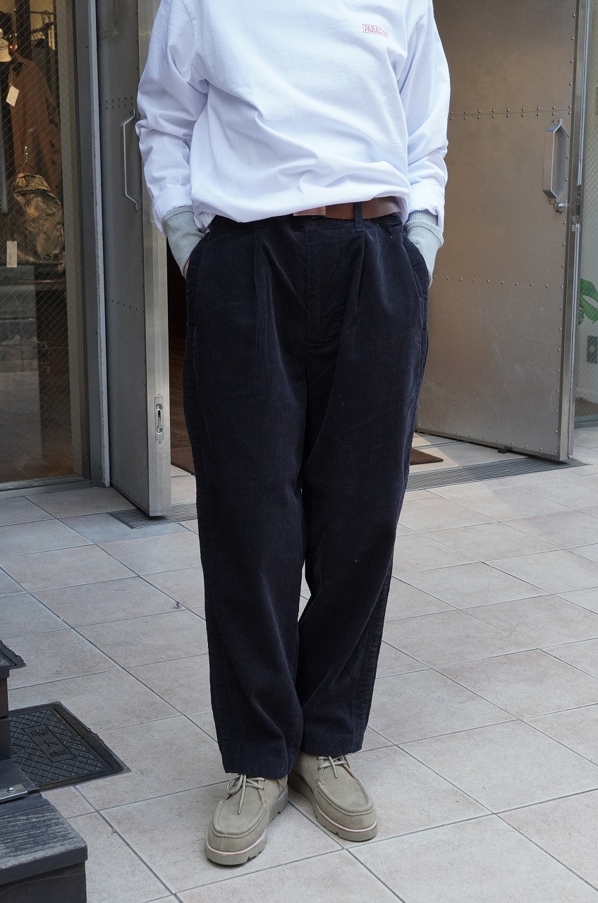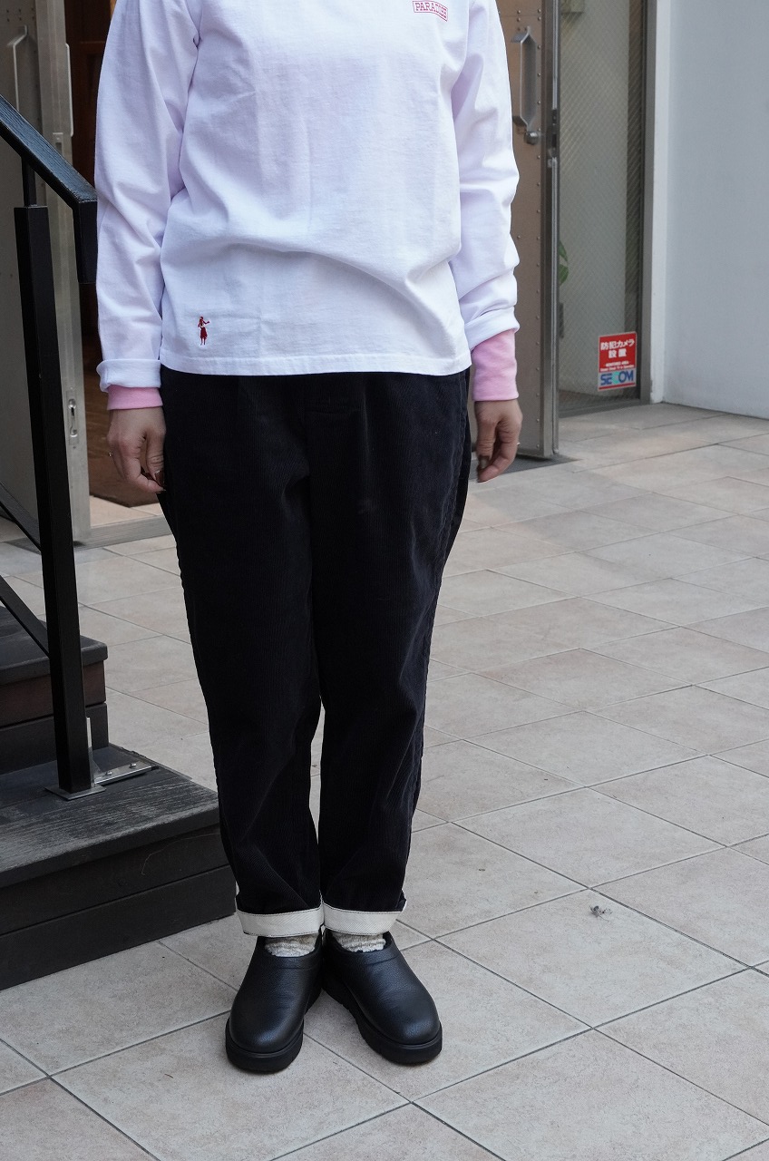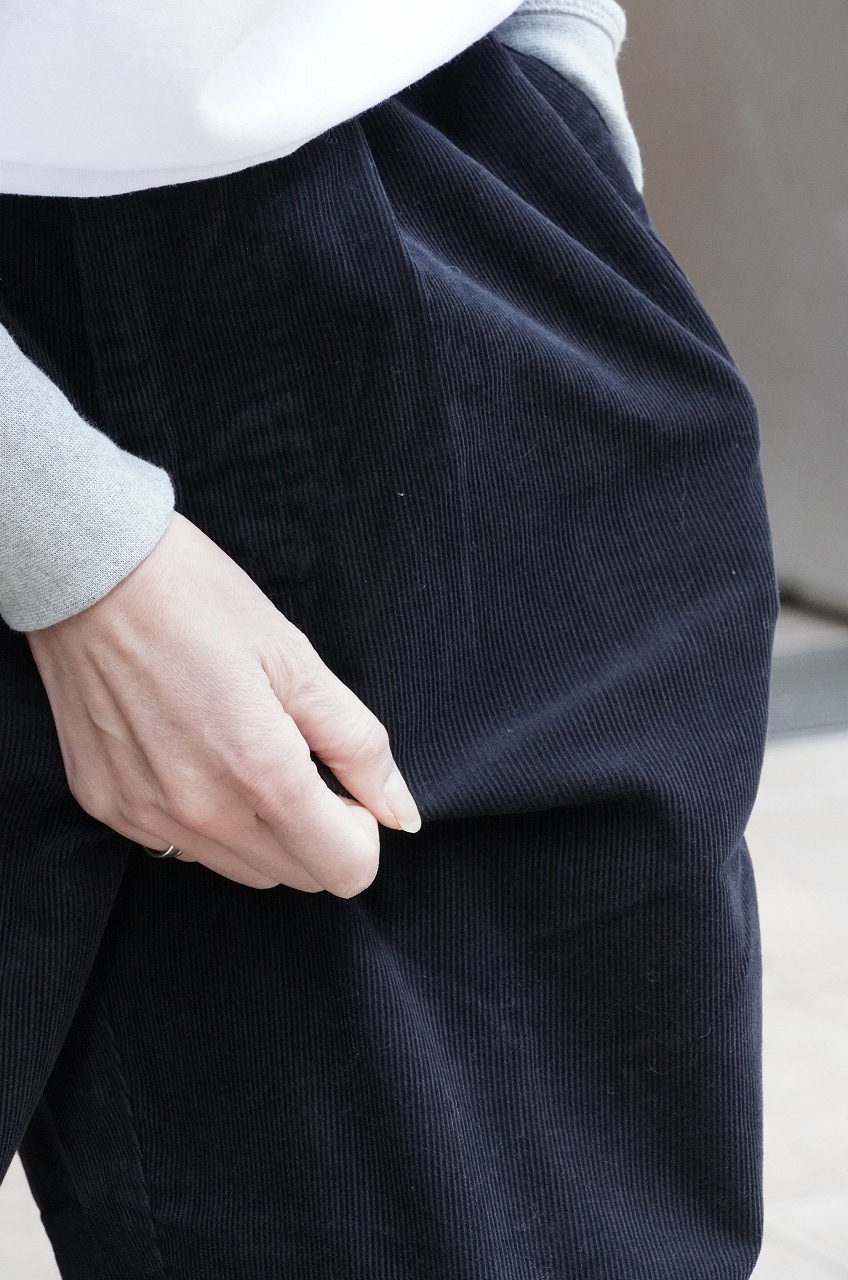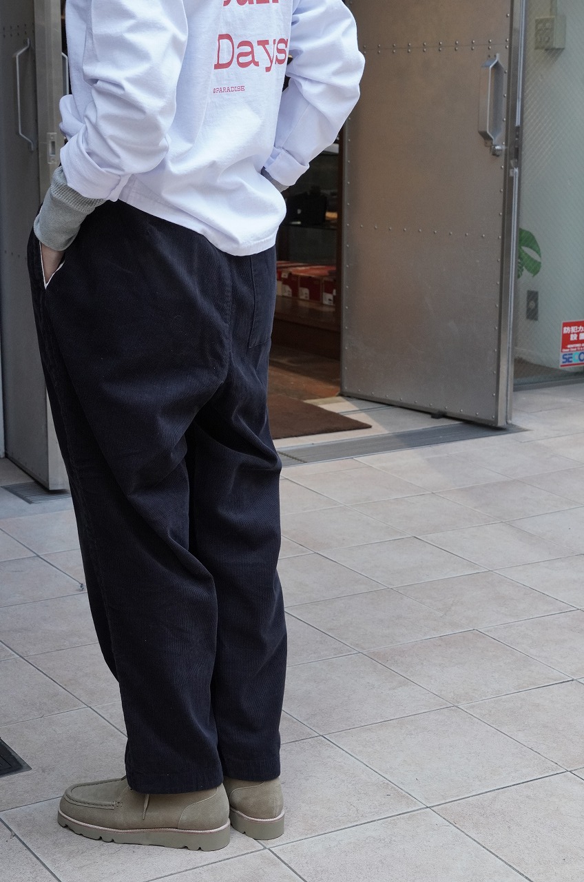 コーデュロイパンツは腰回りゆったりめのテーパードパンツなので、
