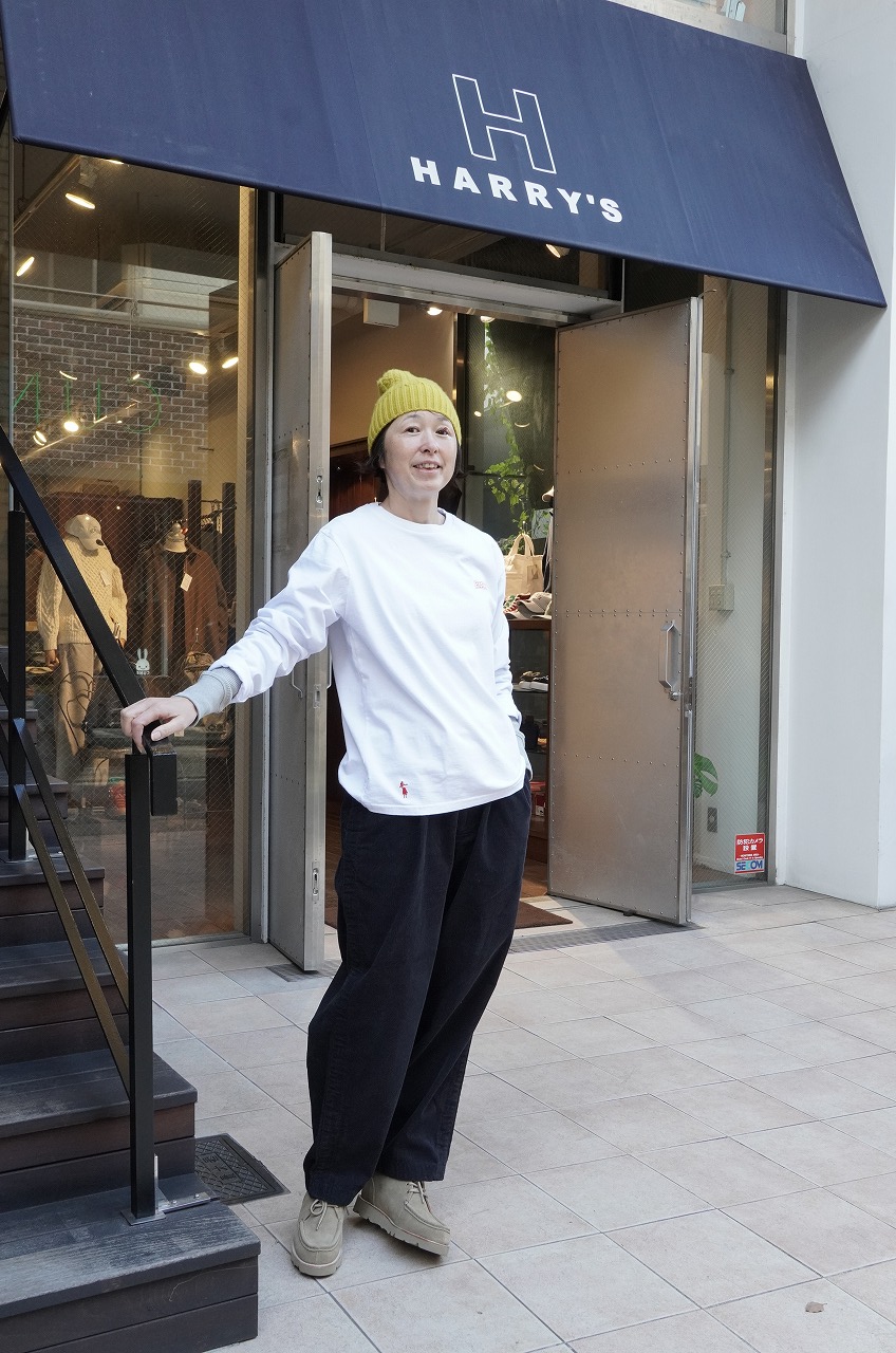 ワイドテーパードのコーデュロイパンツは膝が出にくくて、ガシガシ穿けて気を使わなくていいそうです(^^)冬のボリュームのあるトップスにも合わせやすく、とてもおすすめみたいです(^^)
