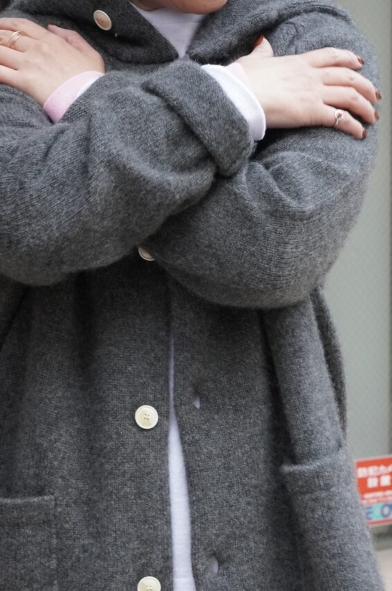 カシミヤ100%のフードカーディガンはお値段だけ見るとびっくりですが、