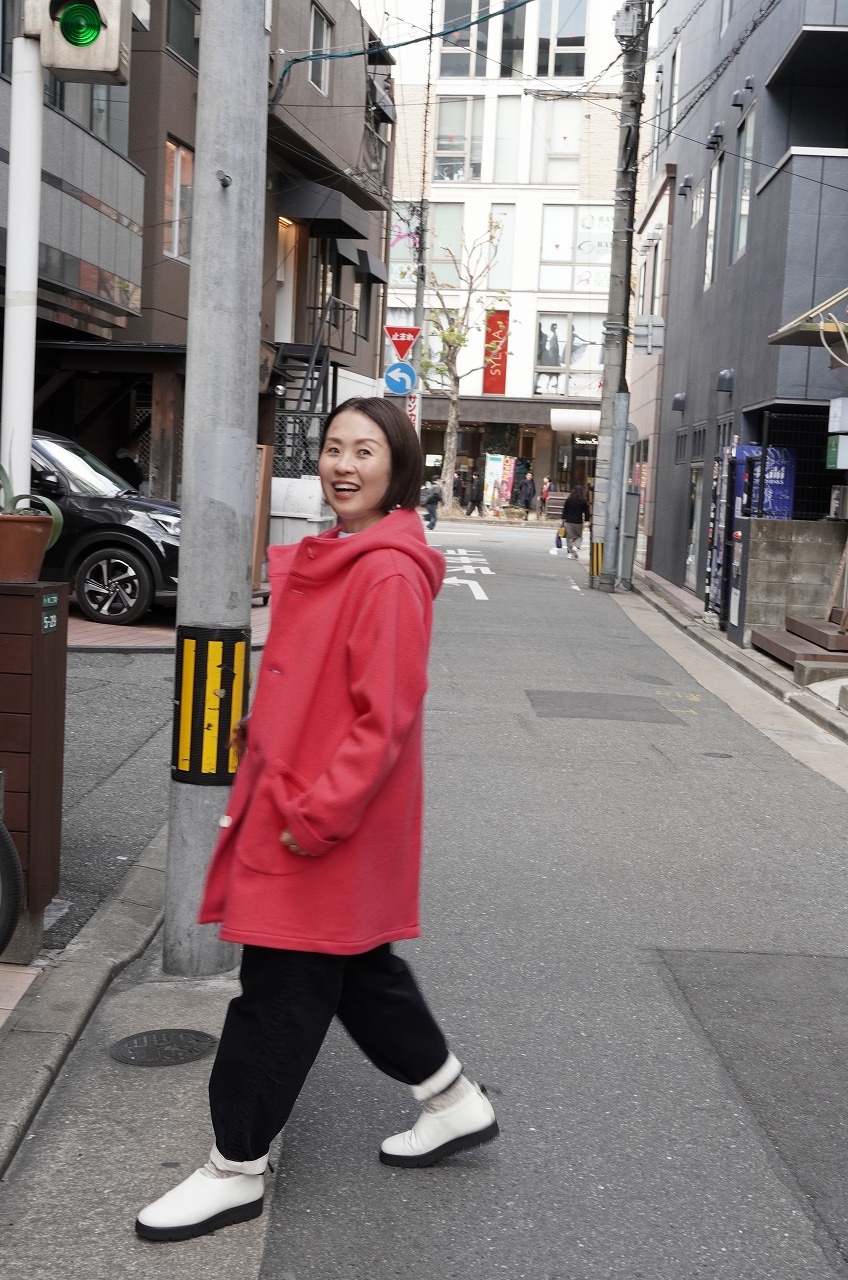 今シーズンはウール素材です。密度が高く、しっかりとした生地で、1枚仕立てですが暖かいです。