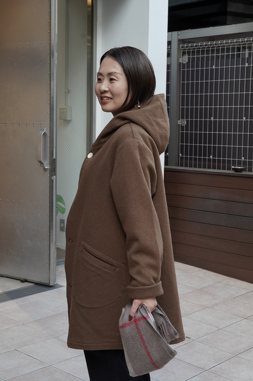 1番上のボタンをとめた時の首元のバランス、フードの高さが絶妙です◎