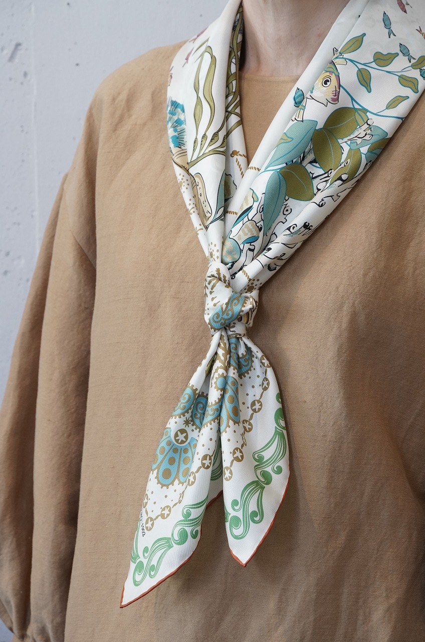silk twill scarf CORAL GARDEN ivory / light blue 90×90cm¥39,600