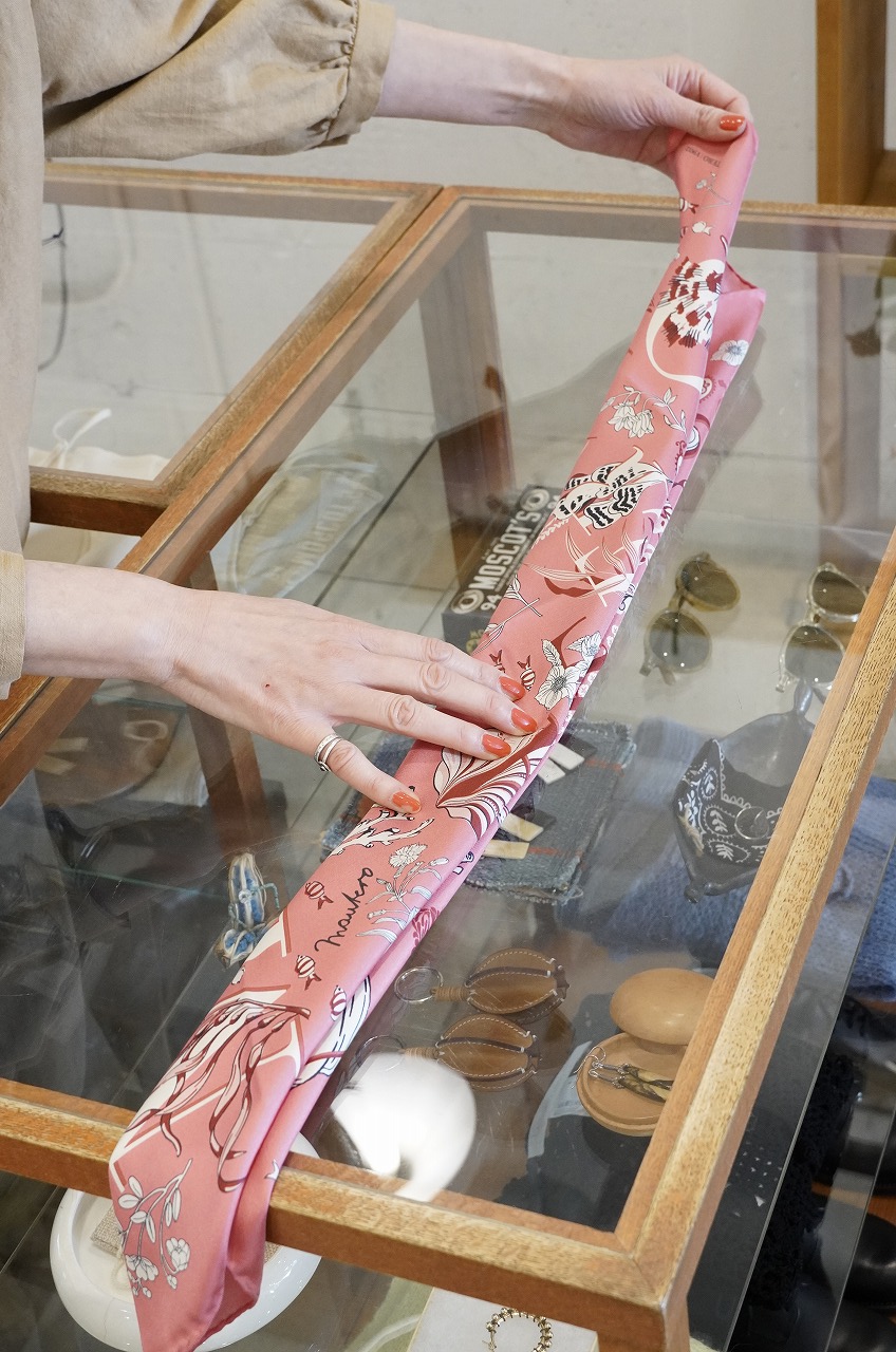 私のように気になるけど、どう巻いたらいいか分からないし、コーディネートも難しそうとハードル高いと思われているお客さまも多くいらっしゃるので、一緒にスカーフデビューしませんか(^^)