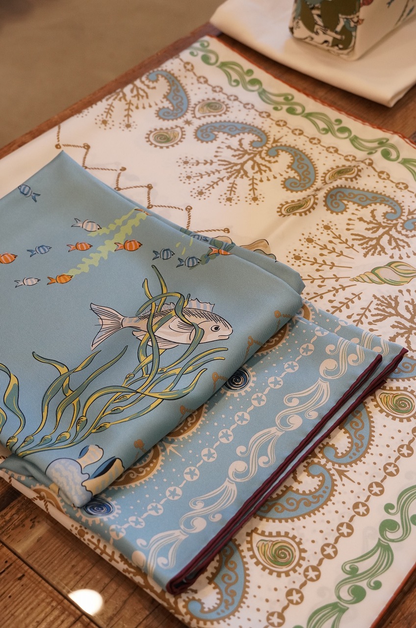 色鮮やかな絵本や絵画のようなスカーフたち。ぜひぜひ、ご覧になってください。