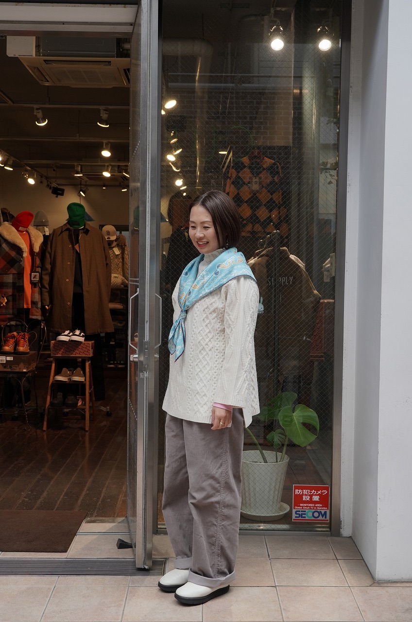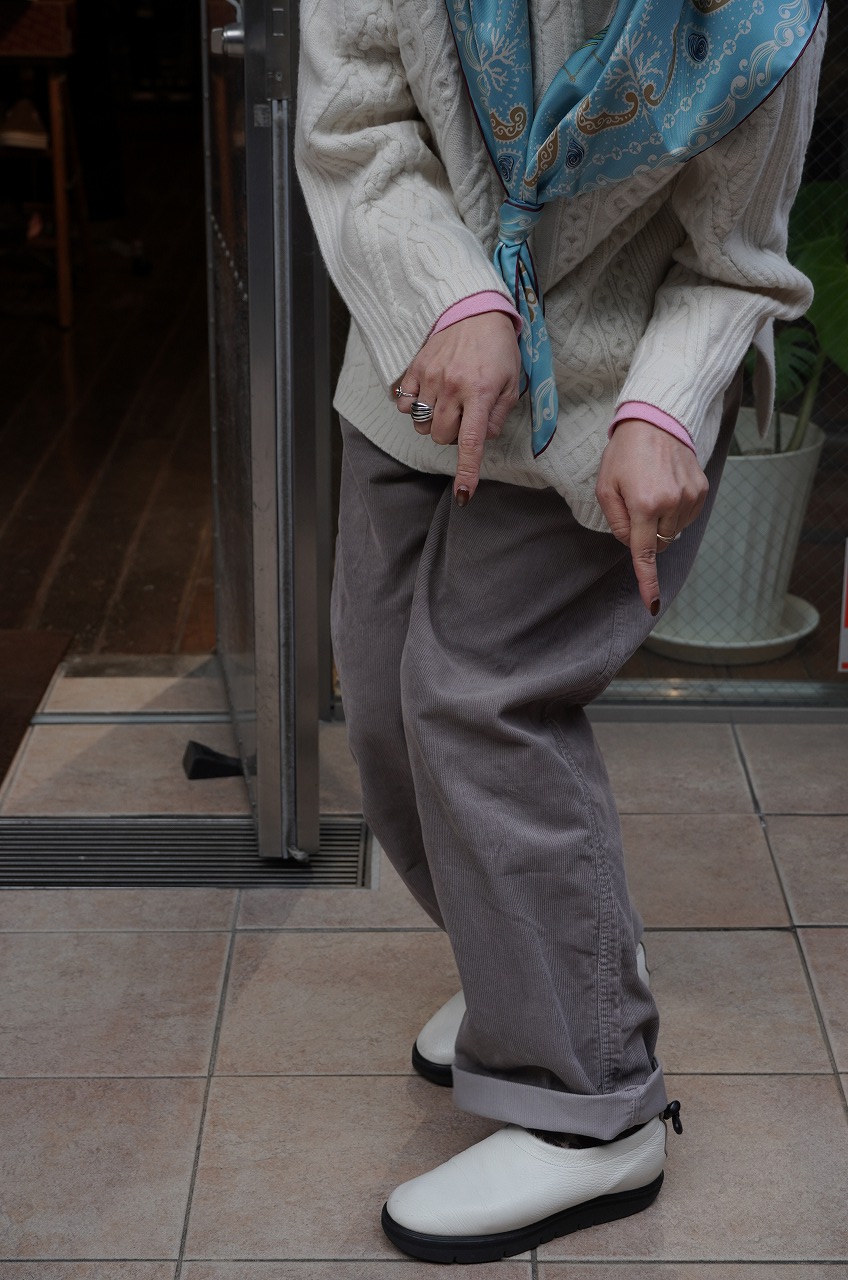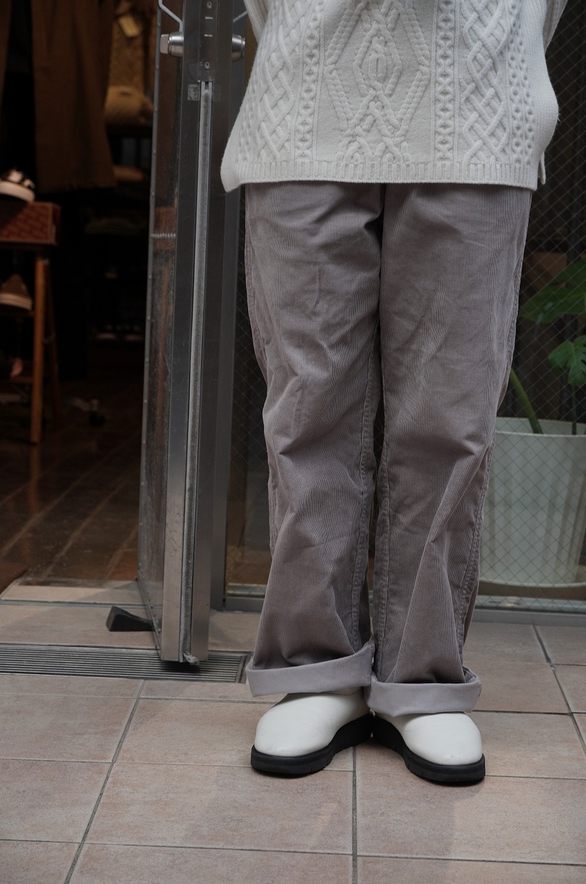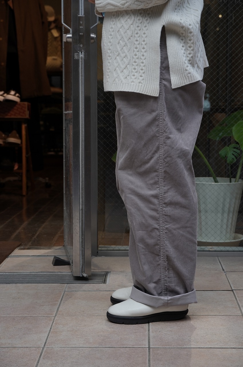 冬はコーデュロイパンツが穿きたくなります。カタチは腰回りゆったりとしていて太めのストレートで綺麗なシルエットです。