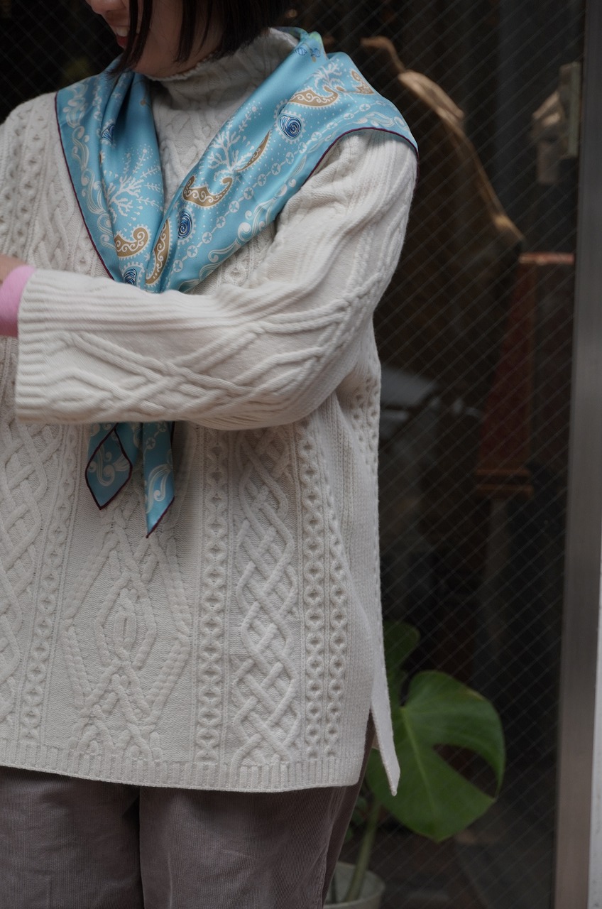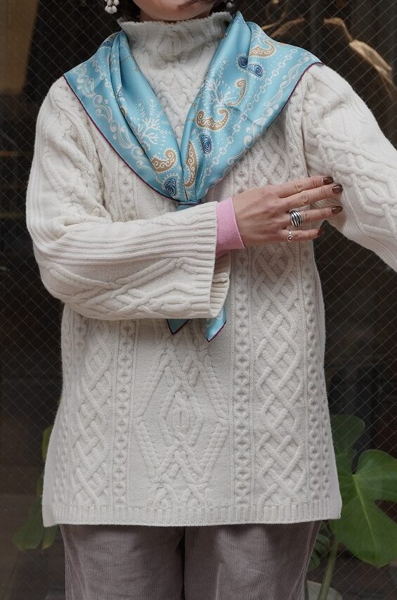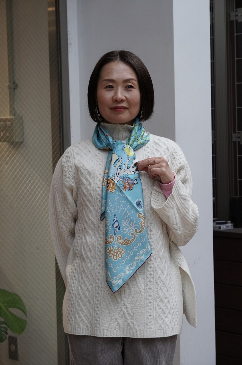 スカーフが映えますね!顔映りも明るくなります。