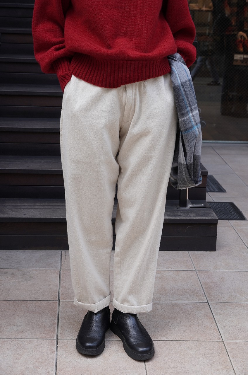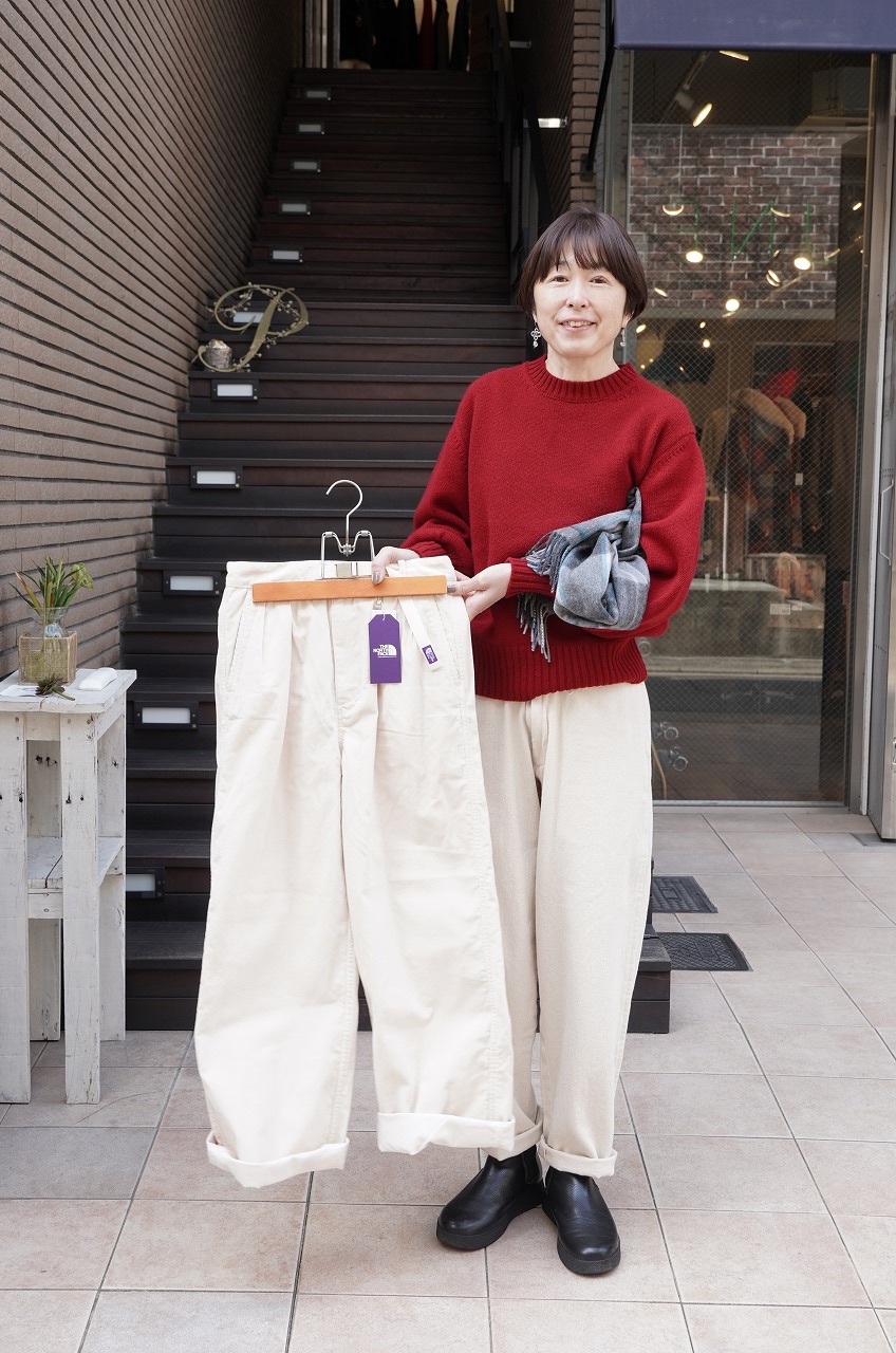 似たような色のノースフェイスパープルレーベルのコーデュロイパンツもラスト一枚になりましたが、この時期春に向かっているイメージでオフホワイトのパンツを