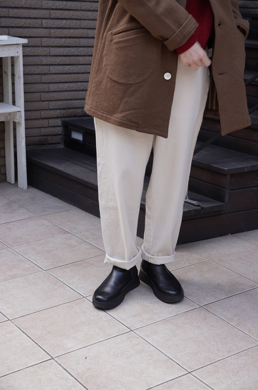 ユーモレスクの素敵なニットにオフホワイトのパンツにサイドゴアブーツ