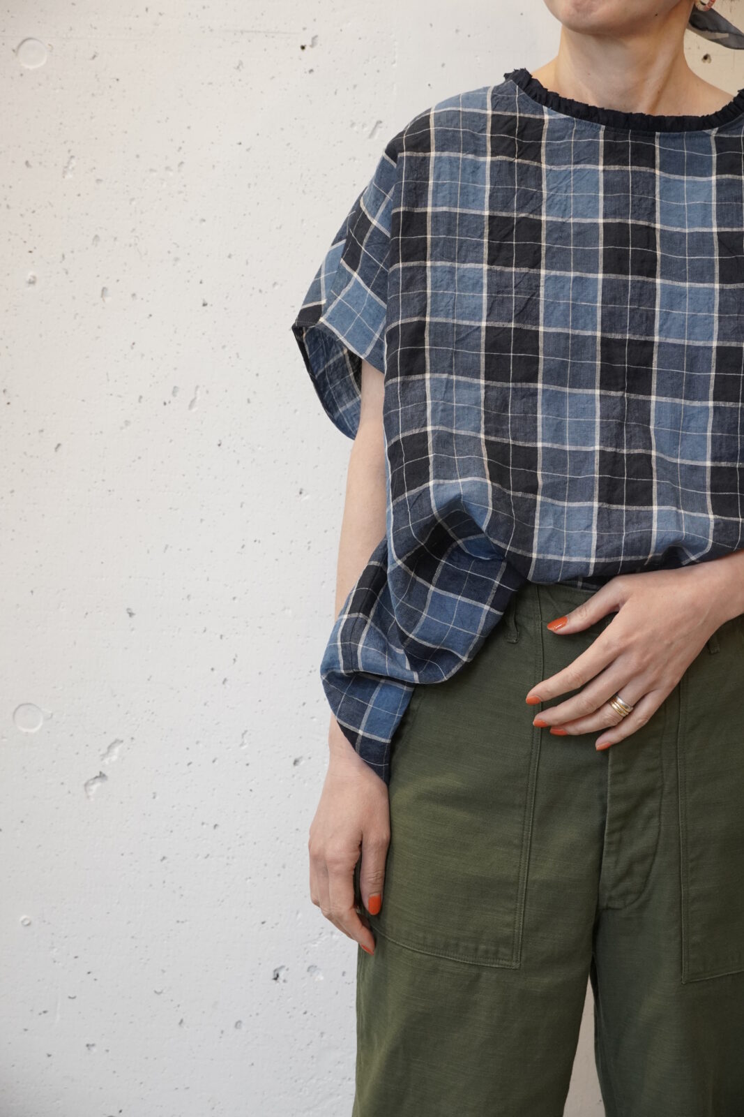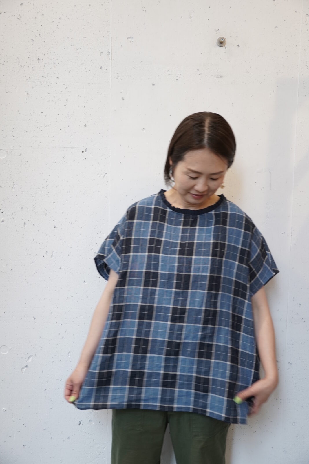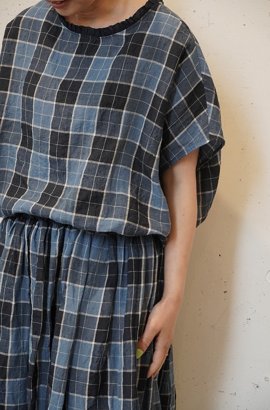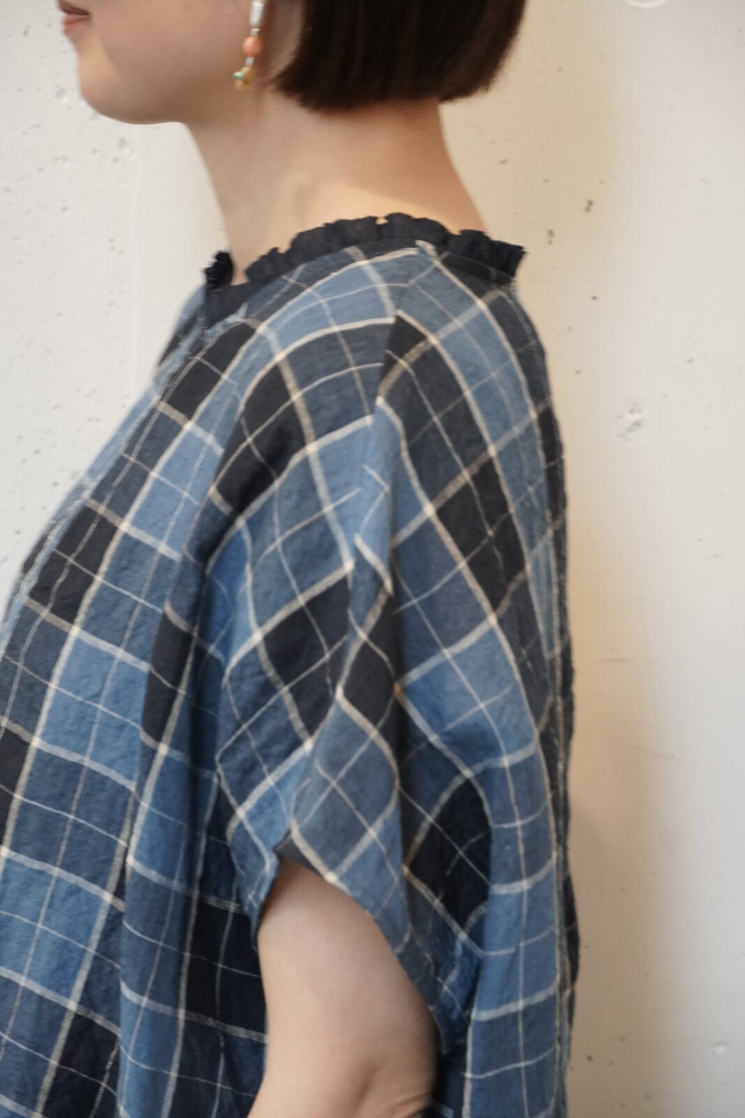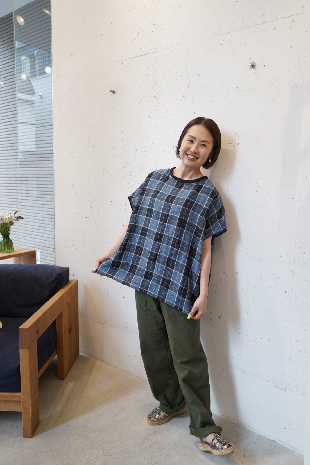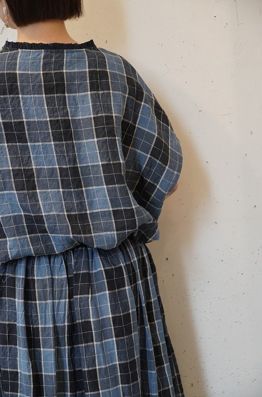Shirt tartan linen sugar blue 1 / 2 ¥59,400