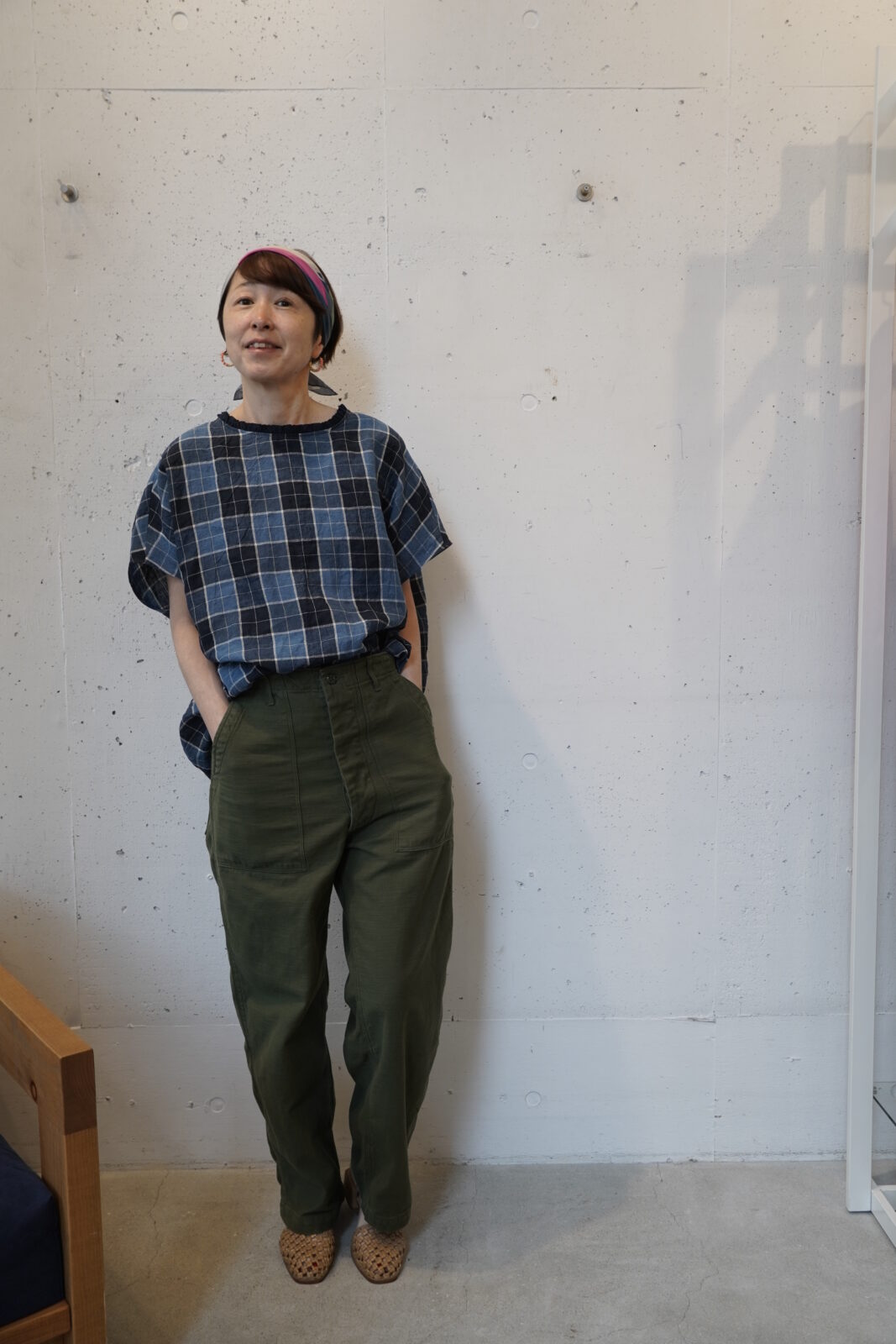 ミチさんもタータンチェックのシャツをサイズ違いの2で着てみました。