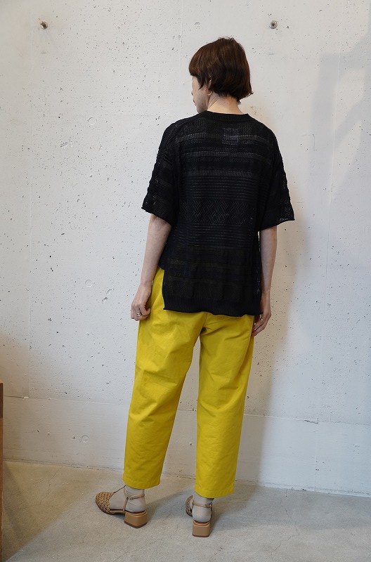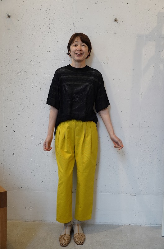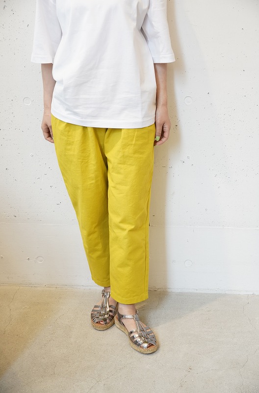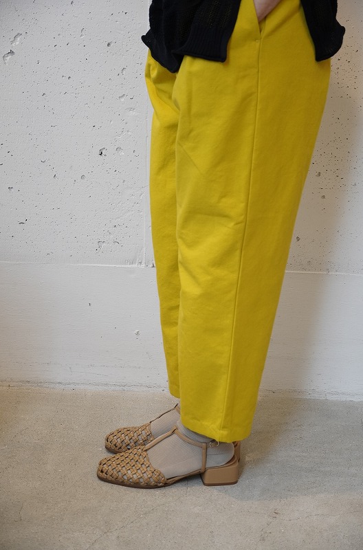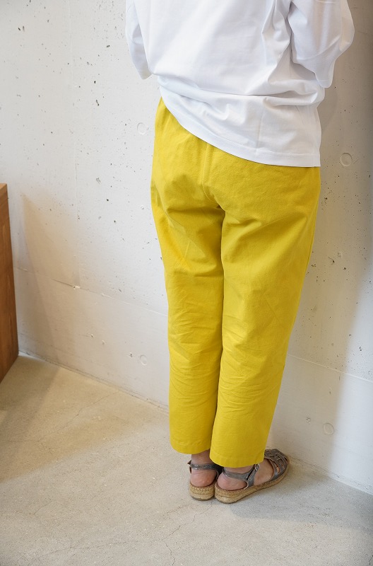 そしてこちらの黄色のパンツはコットン素材。少し厚めでガシッとした生地感。