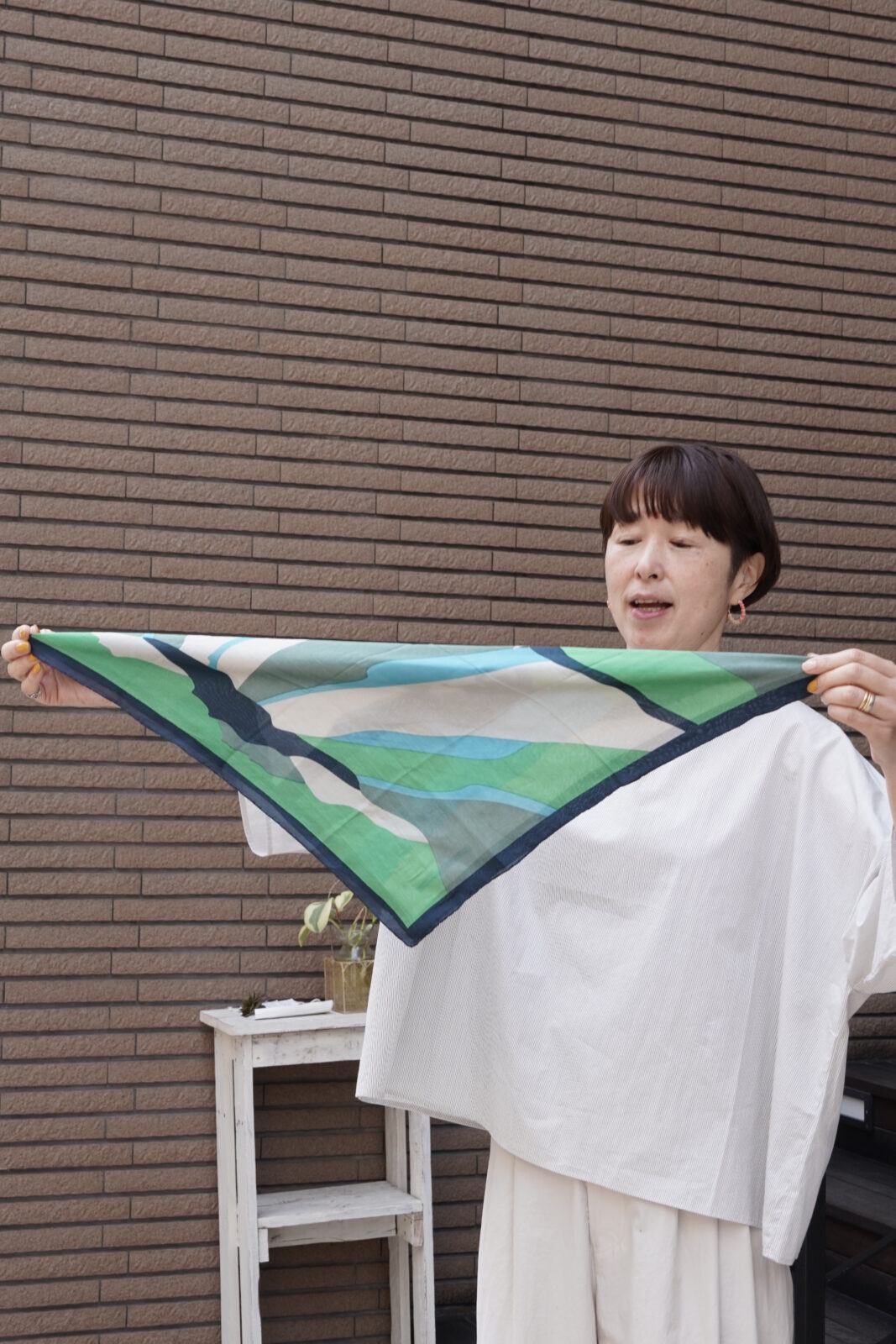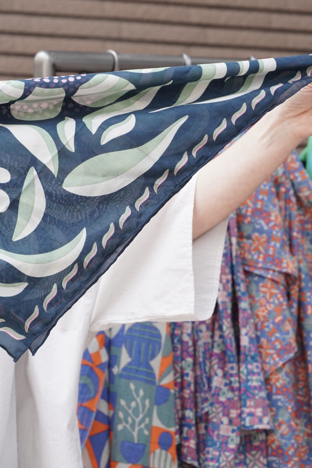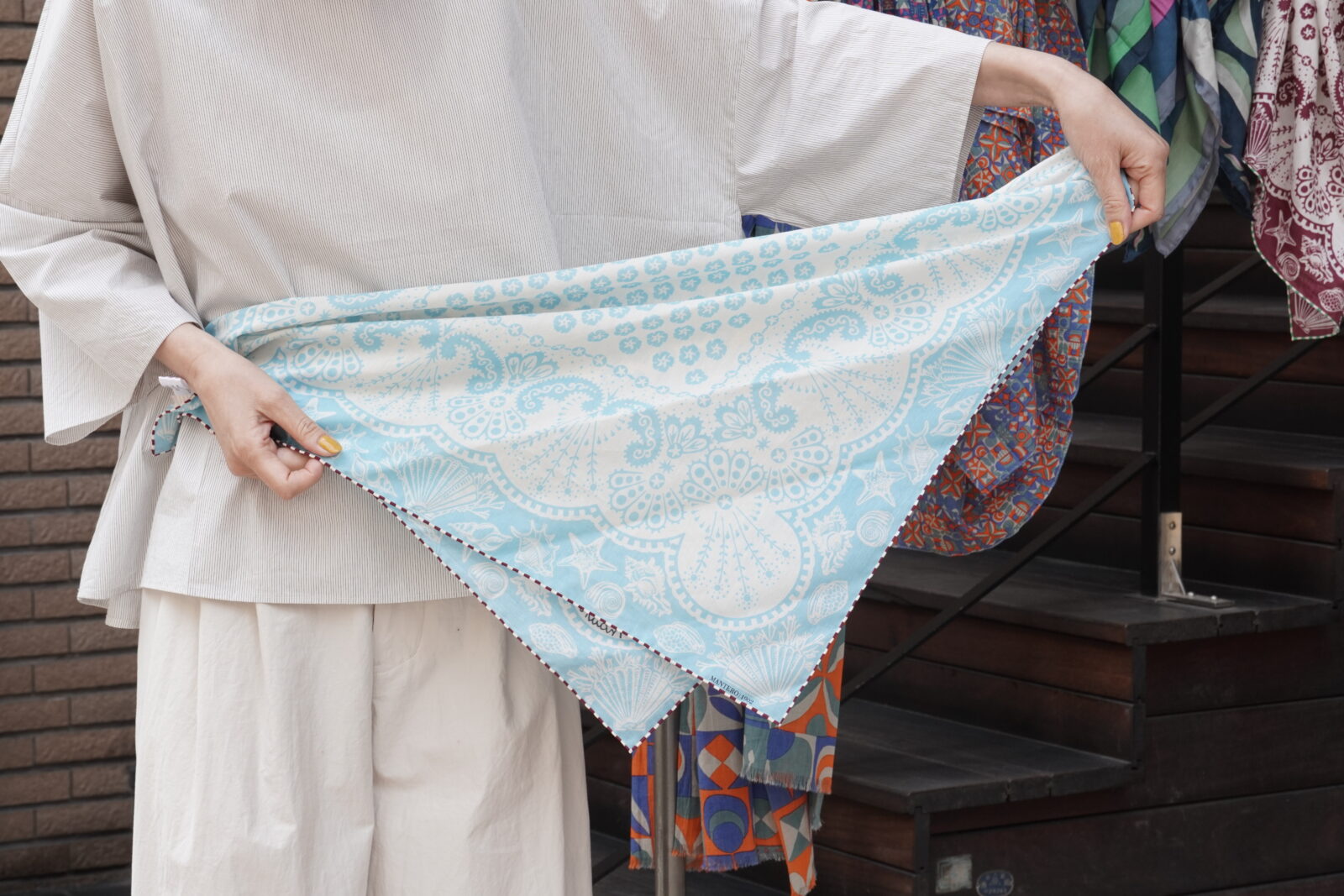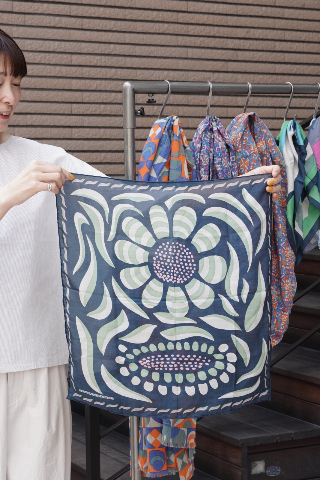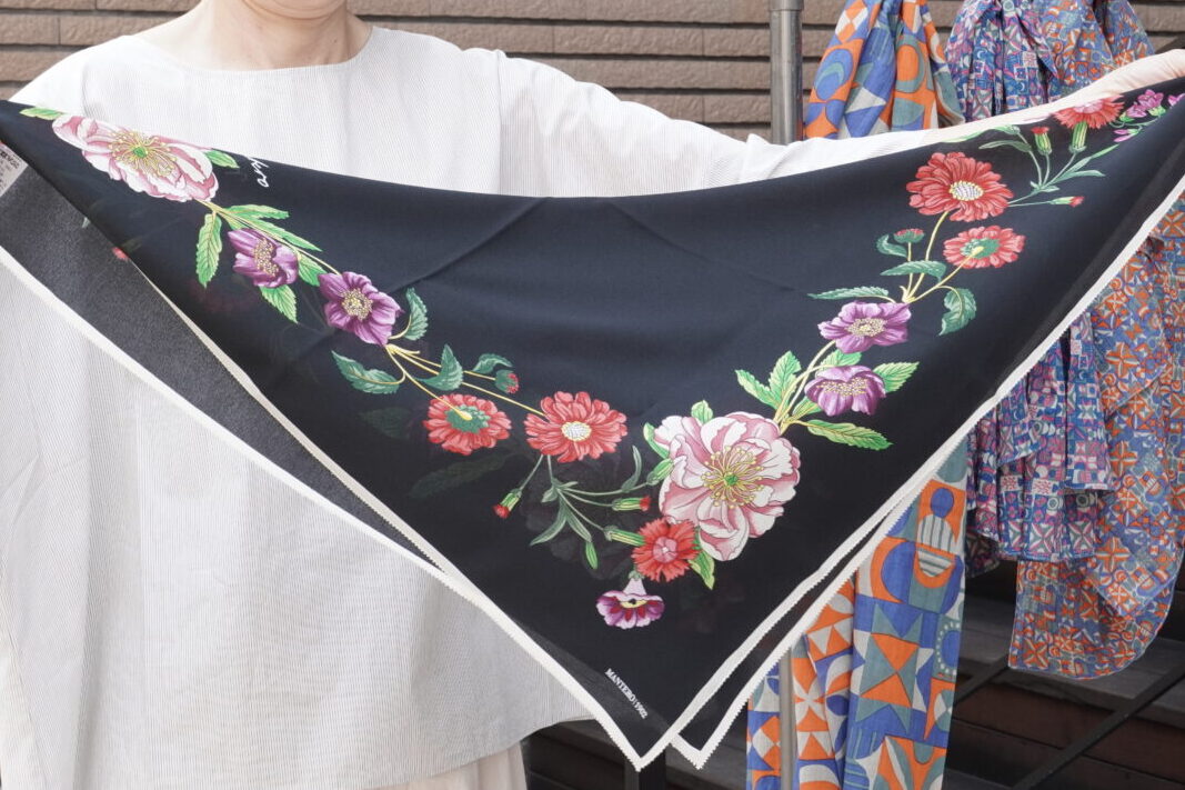 正方形のカタチで先程のストールよりも柄が小さいもの。