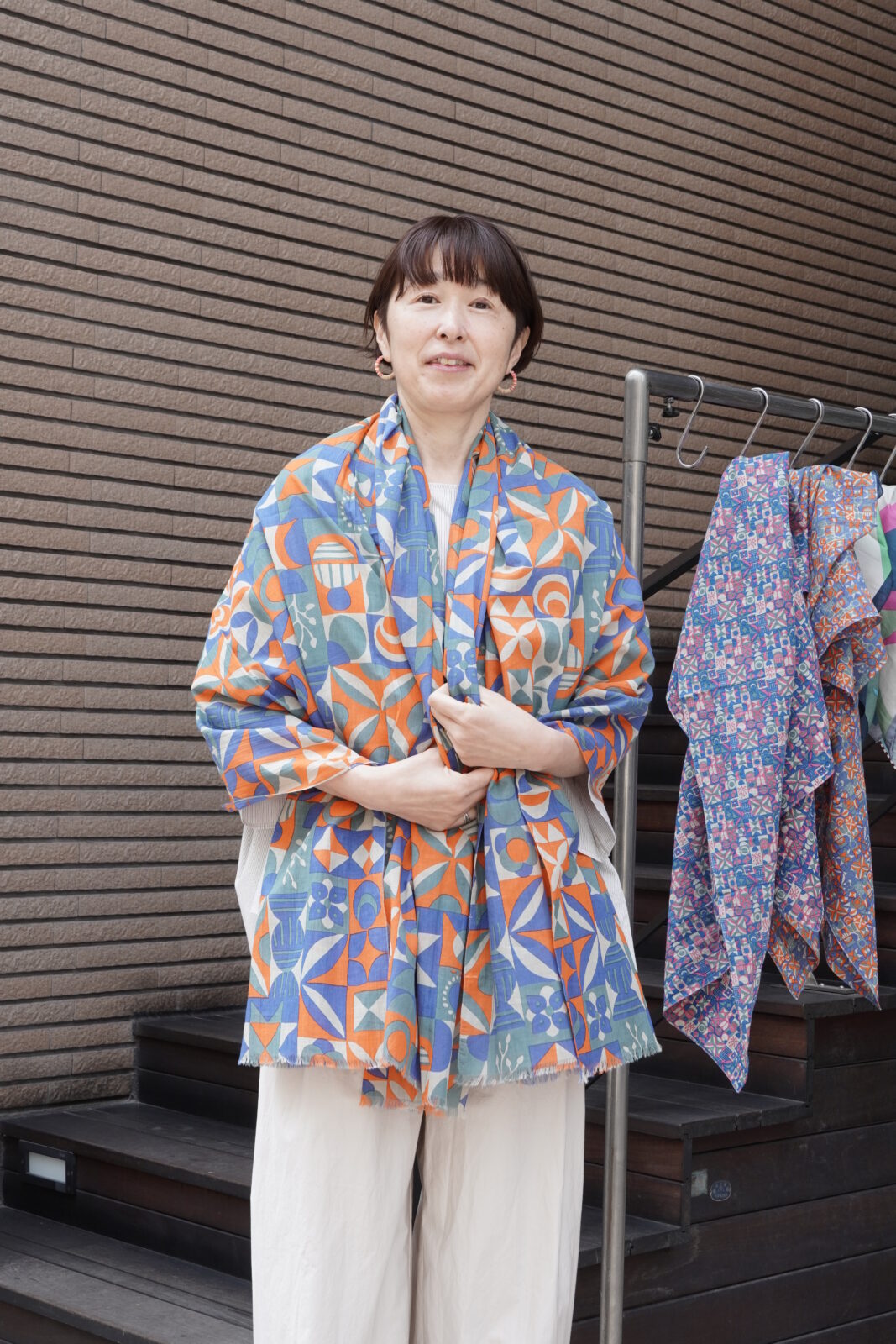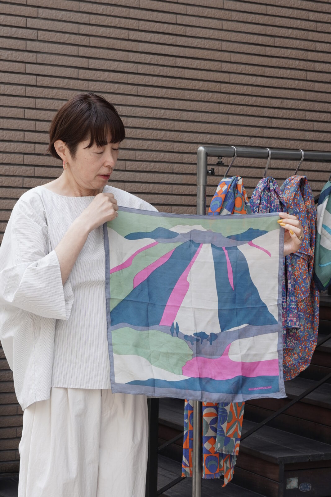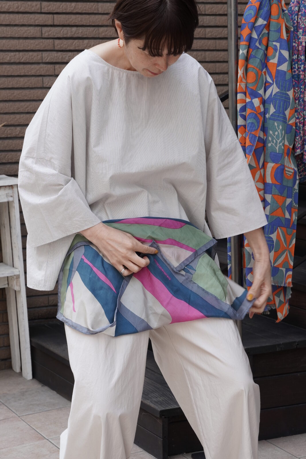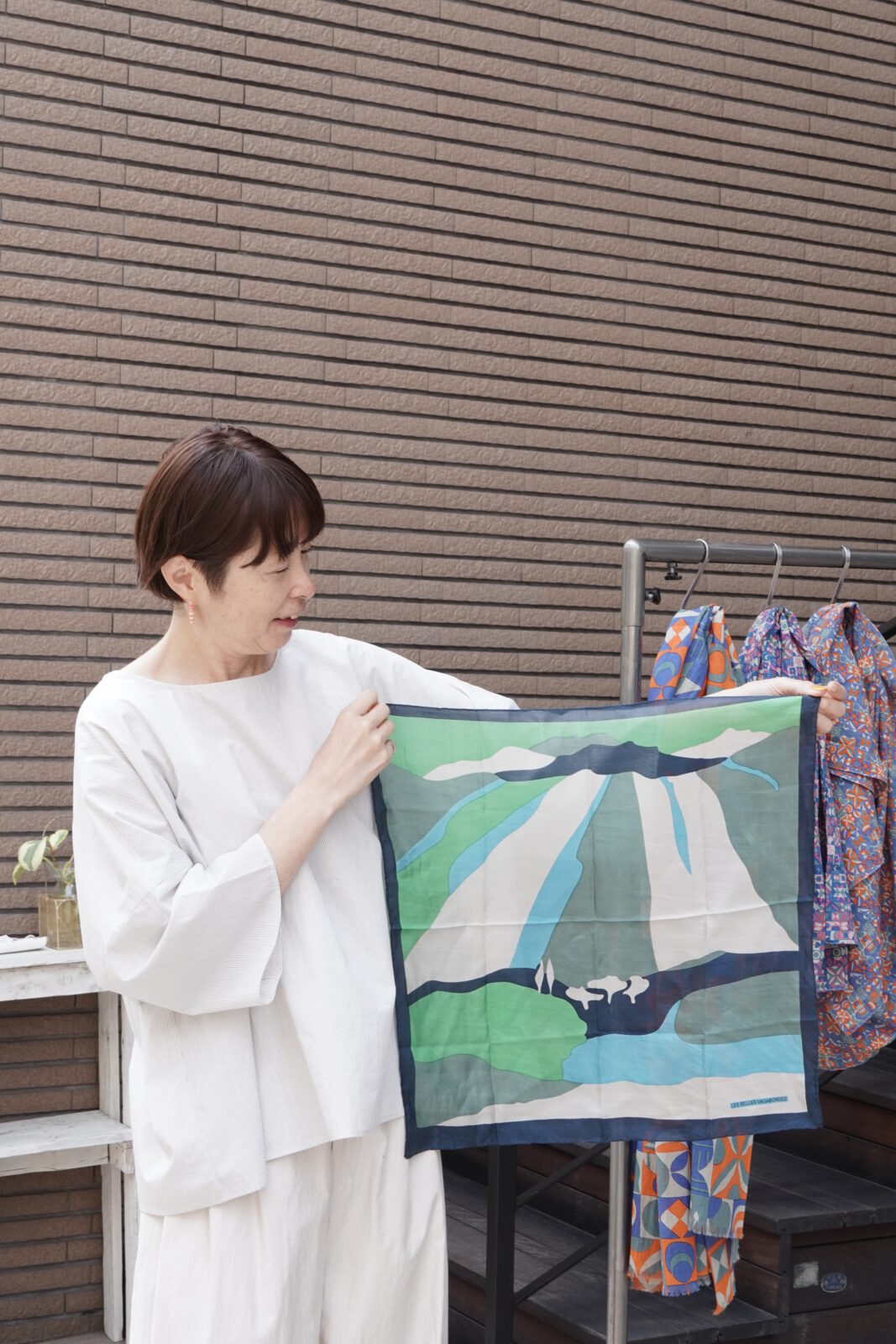 正方形のカタチで先程のストールよりも柄が小さいもの。