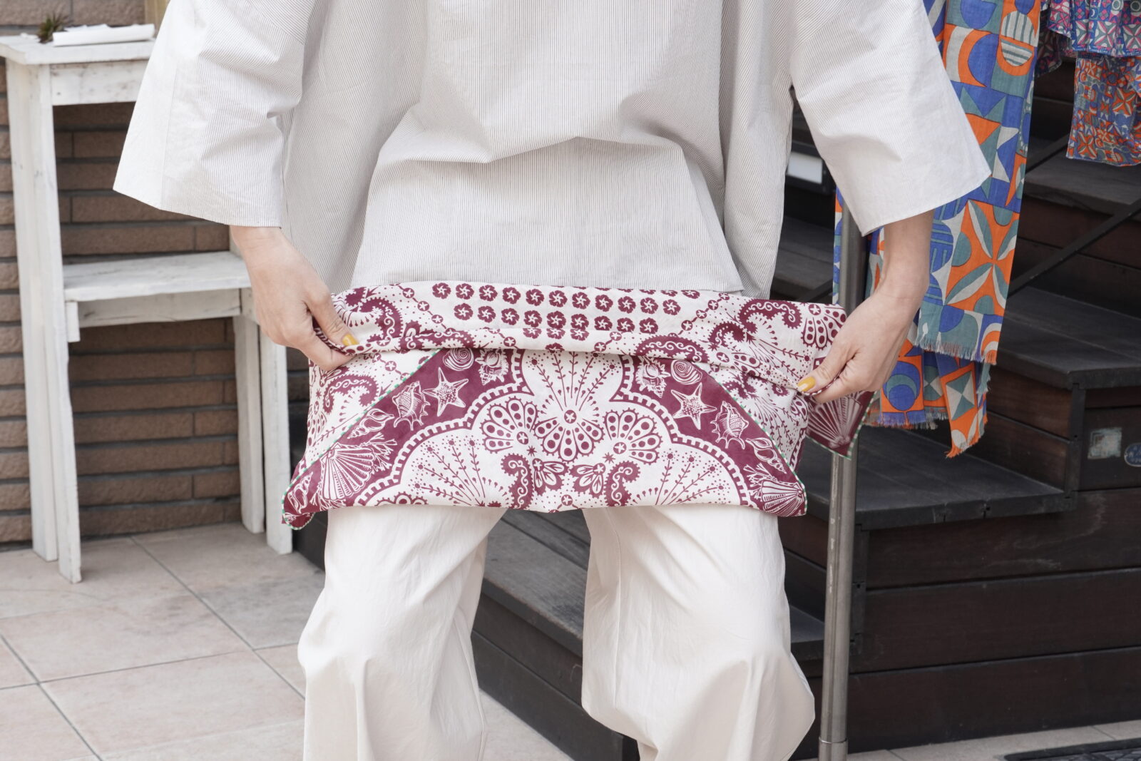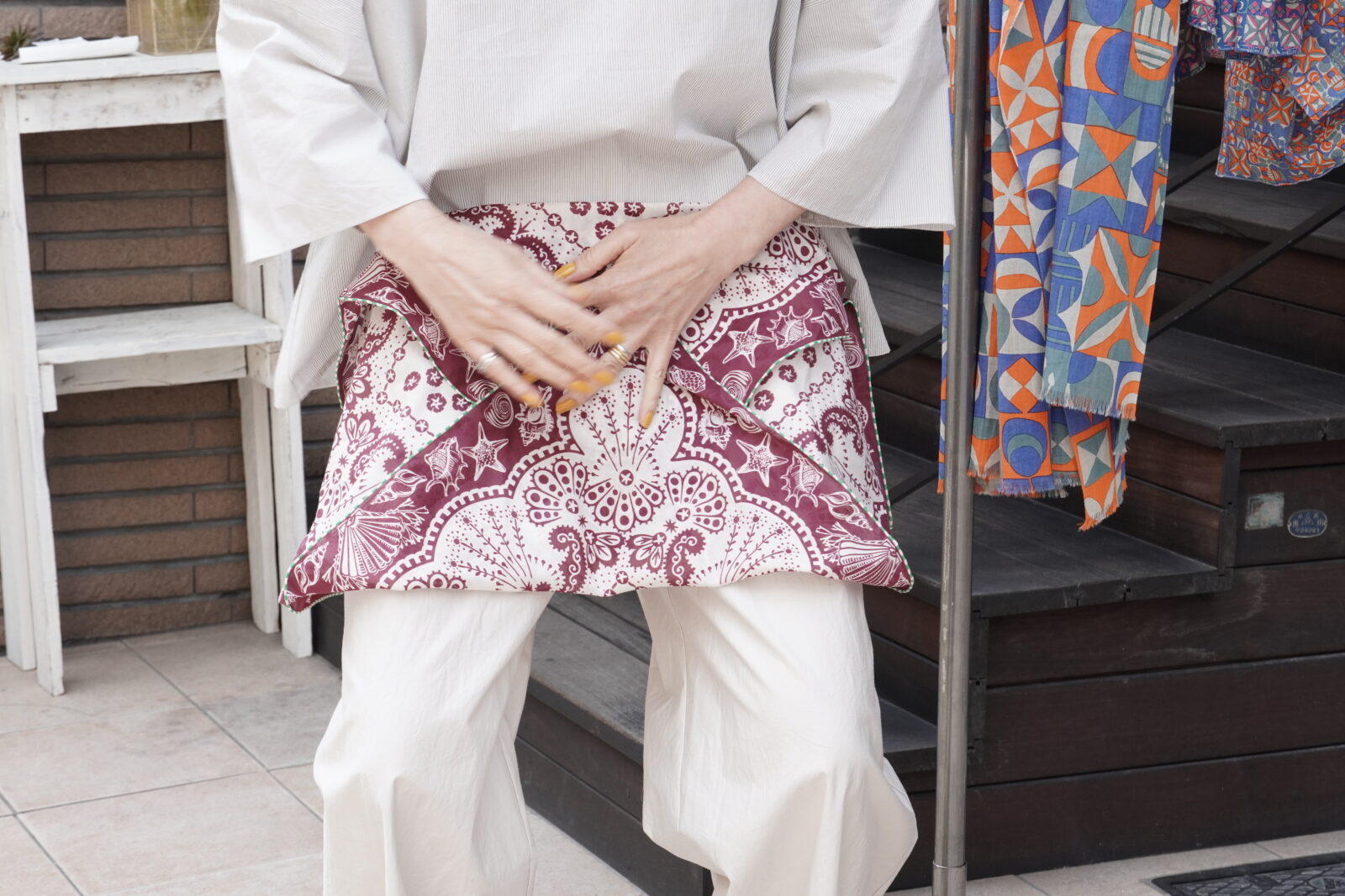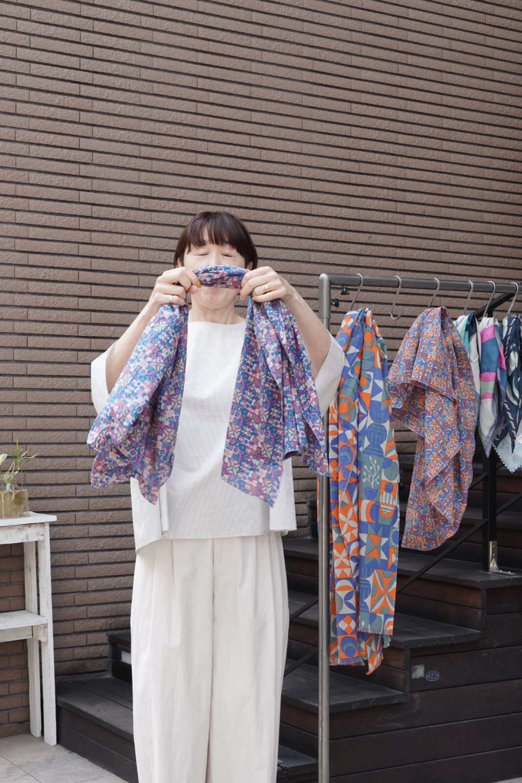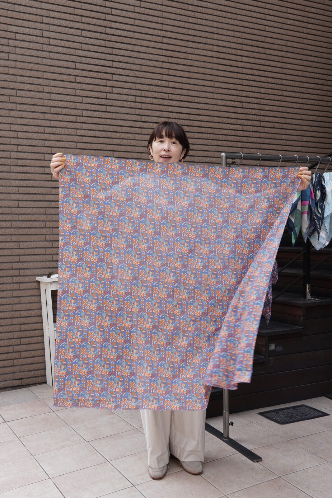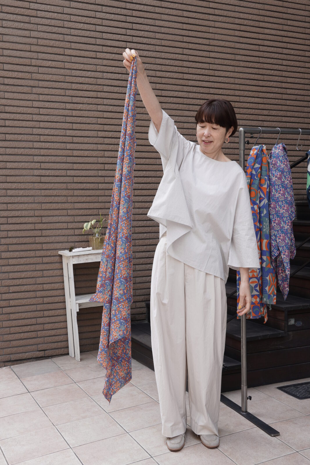 正方形のカタチで先程のストールよりも柄が小さいもの。